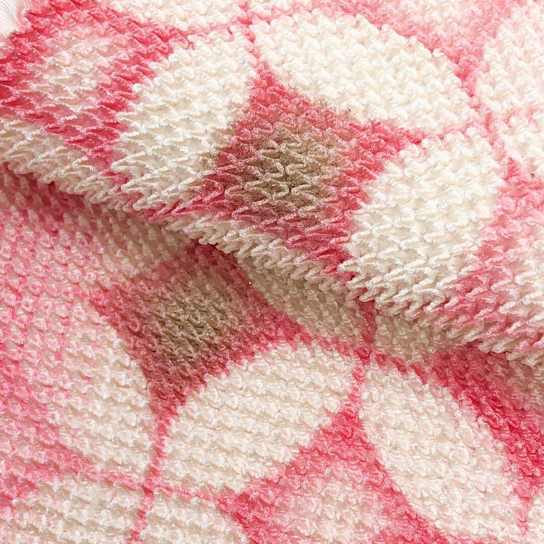 桃色のお色味の暈しに七宝柄がデザインされた品のある素敵な柄裄のお品でございます。