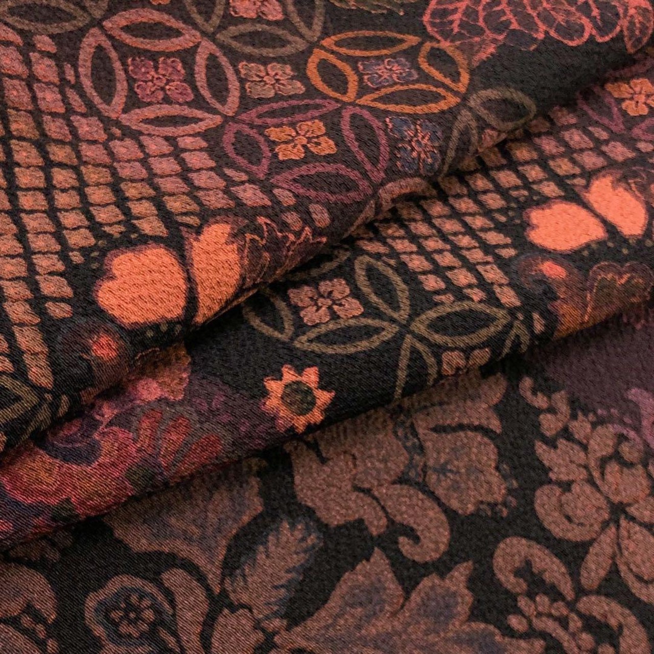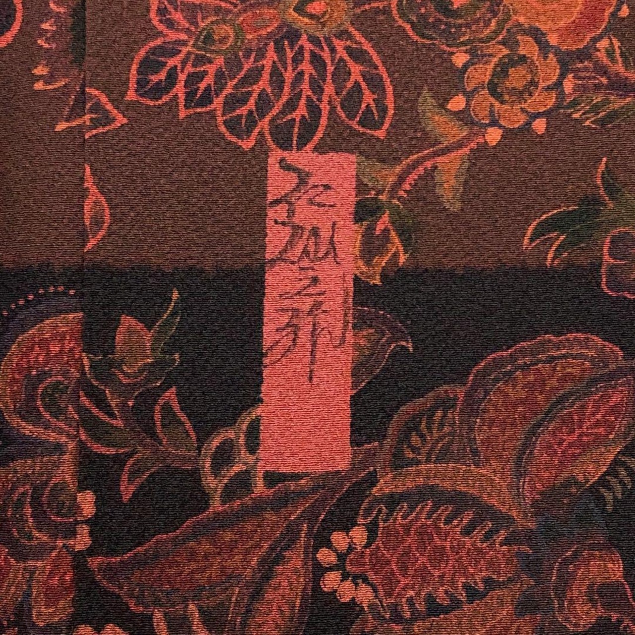 エキゾチックな世界観を感じられる雰囲気のある色彩に花唐草、七宝などの更紗模様の柄裄がデザインされた素敵なお品でございます。