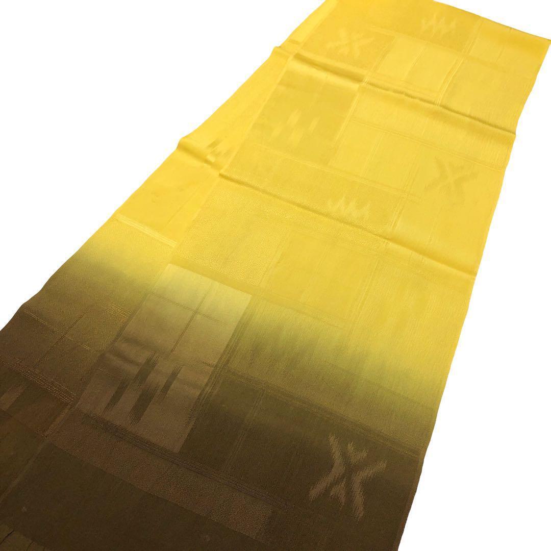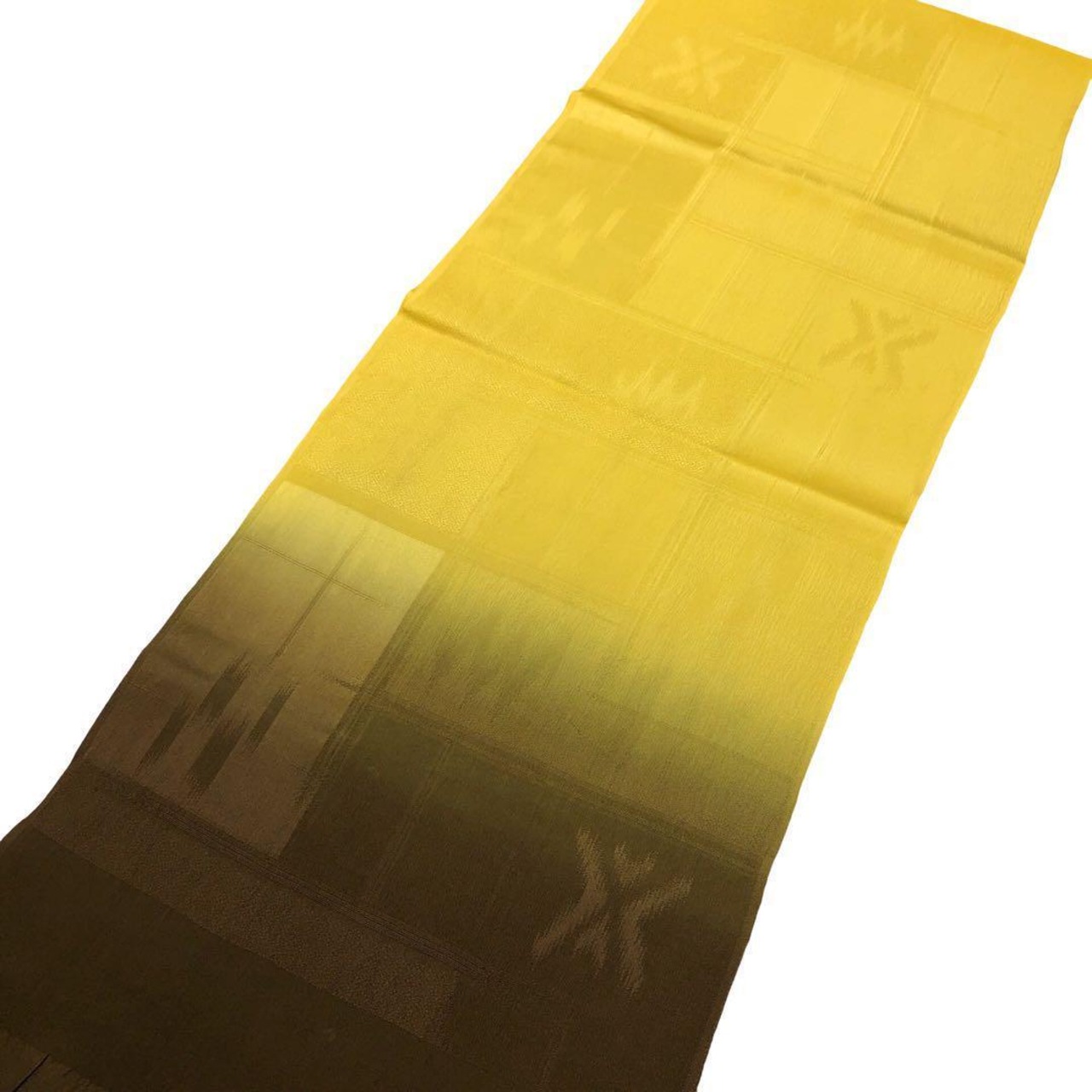 芥子色のお色味の暈しに絣模様がデザインされた品のある素敵な柄裄のお品でございます。