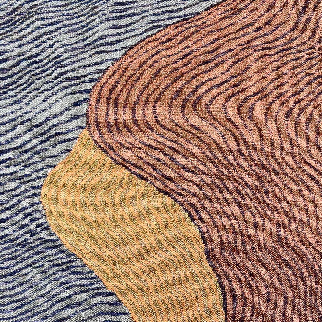 水銀色ベースの三色の色彩、抽象的な柄模様がデザインされた素敵なお品でございます。