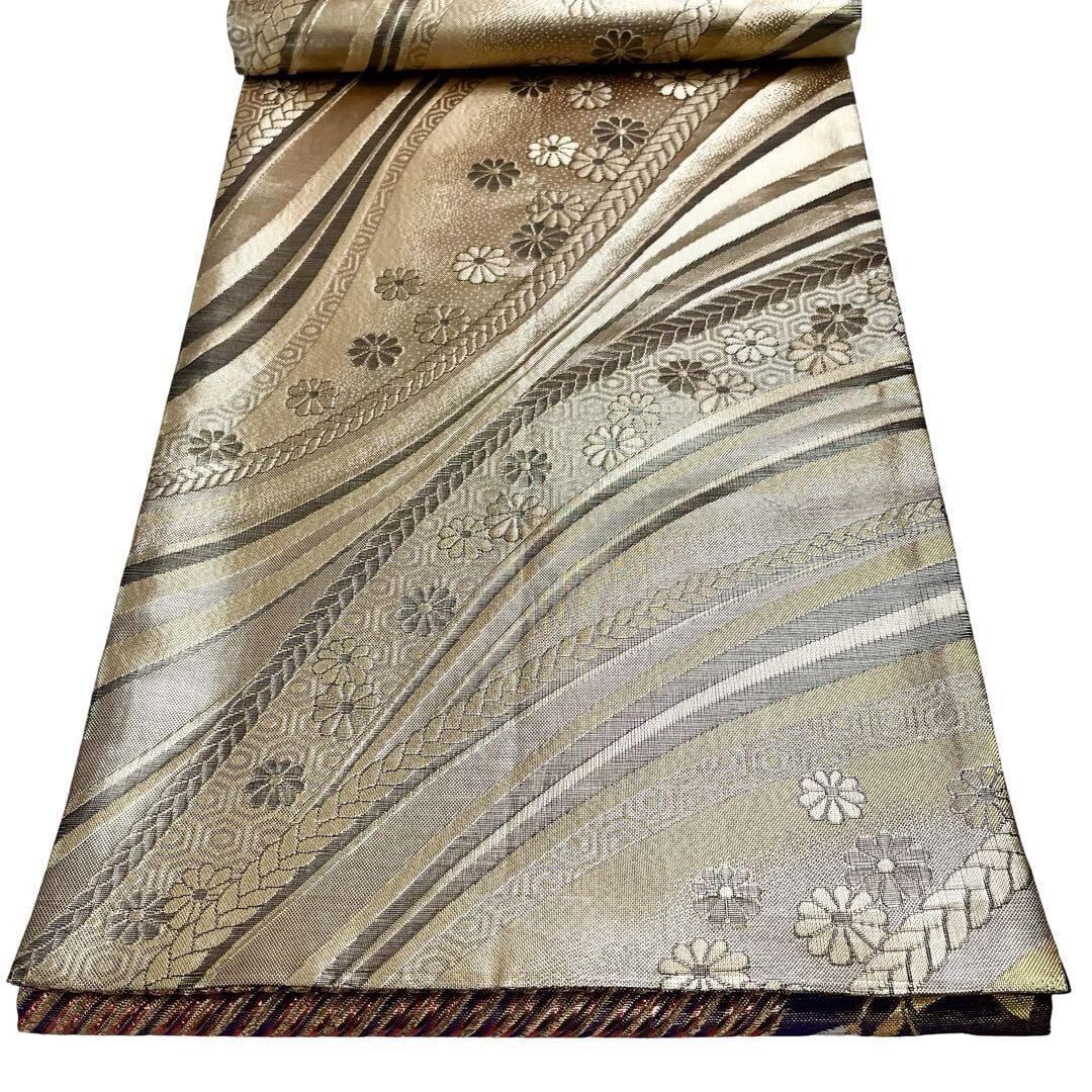 袋帯 煌びやかな辻が花模様 斜め縞模様 金糸 グラデーション 振袖 O-4785 着物 きもの kimono 和服 和装 中古 リサイクル着物 【送料無料】