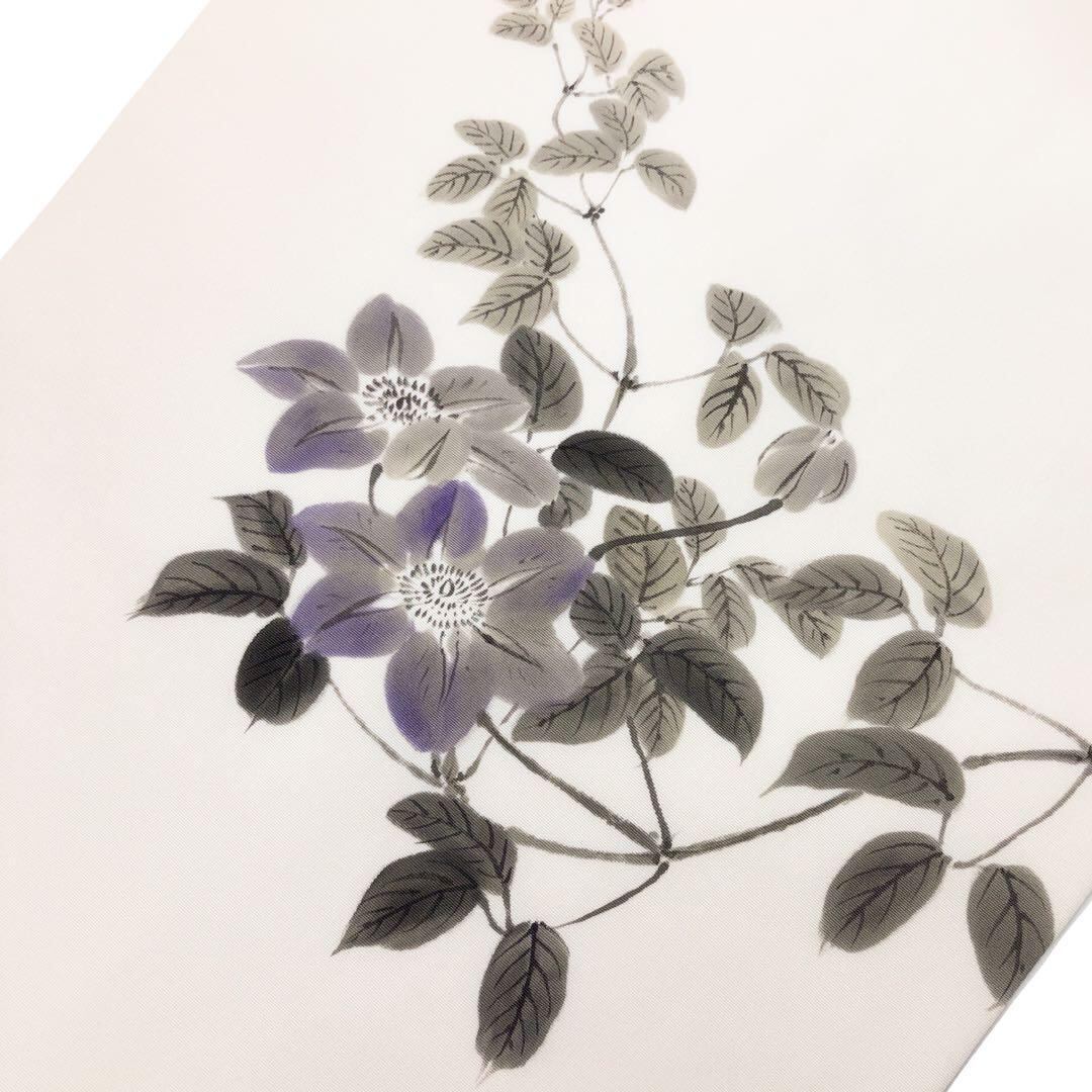 名古屋帯 作家物 塩瀬 手描き 花模様 乳白色 O-4795 着物 きもの kimono 和服 和装 中古 リサイクル着物 【送料無料】