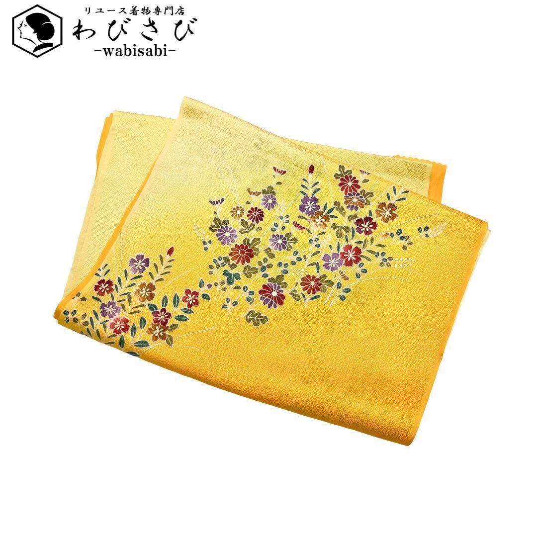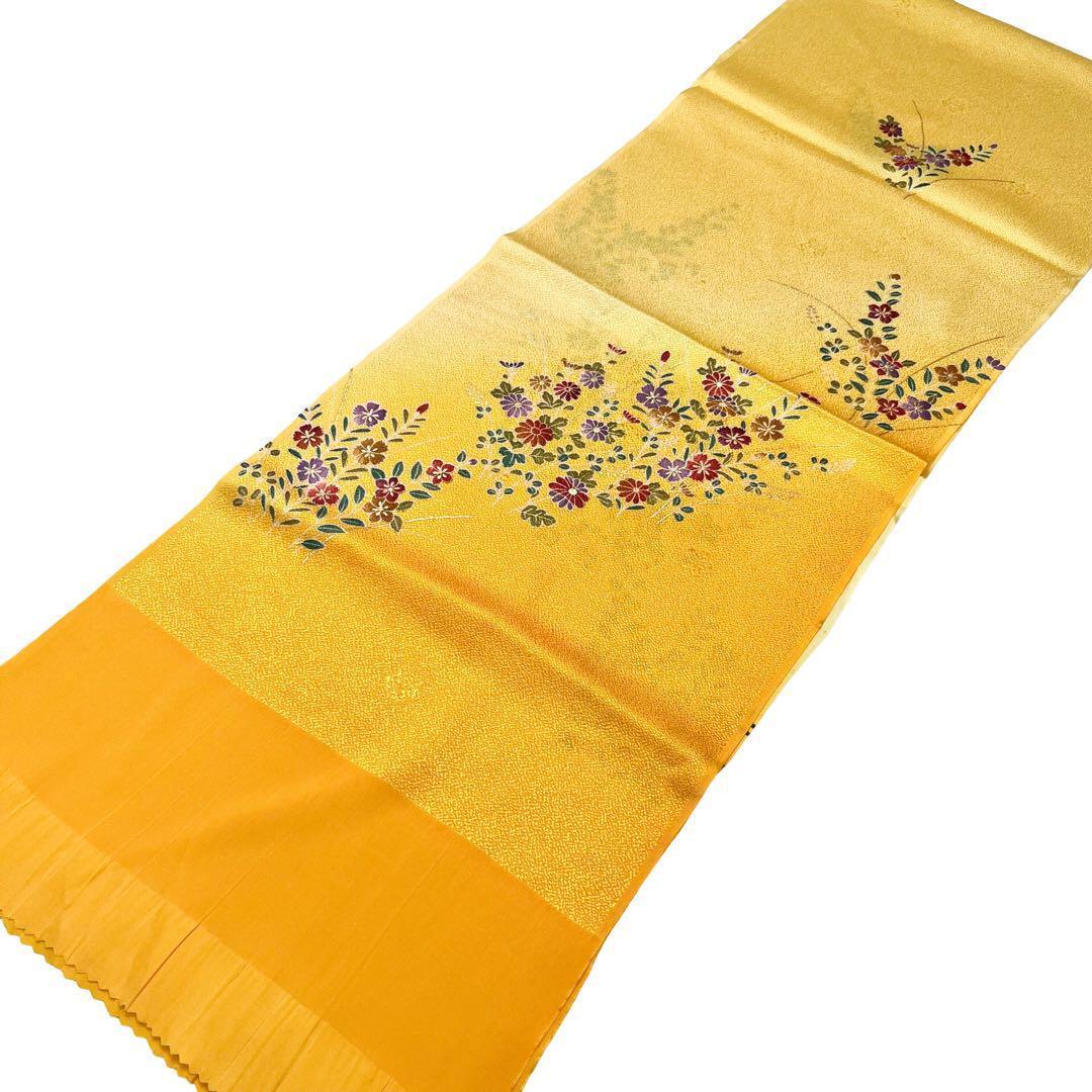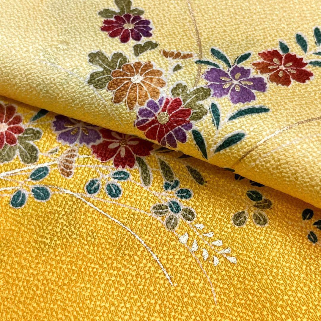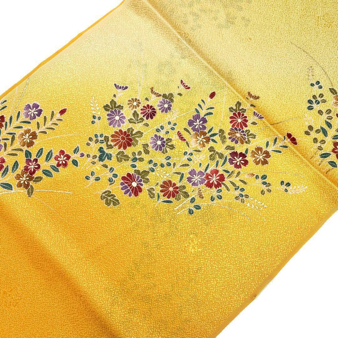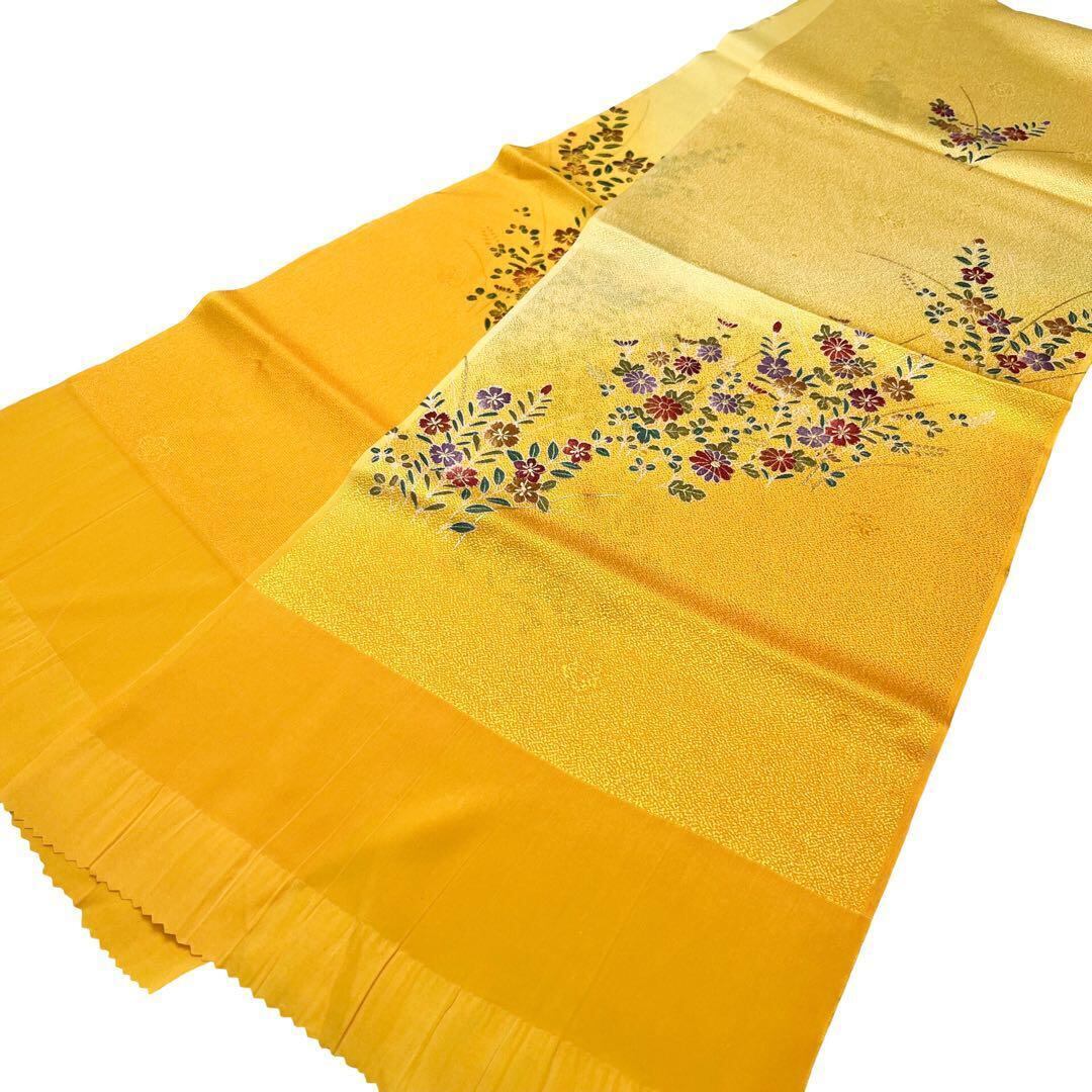濃卵のお色味の暈しに花模様がデザインされた品のある素敵な柄裄のお品でございます。
