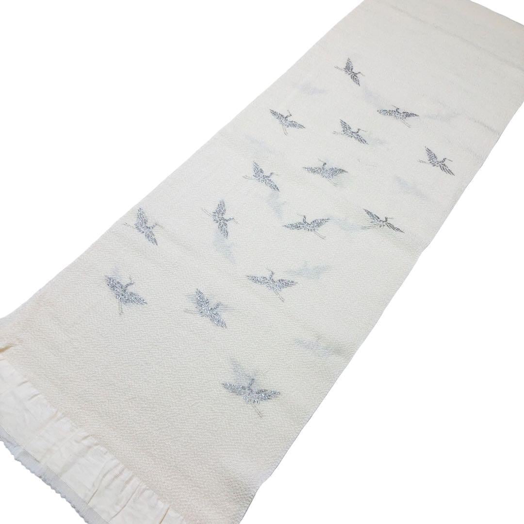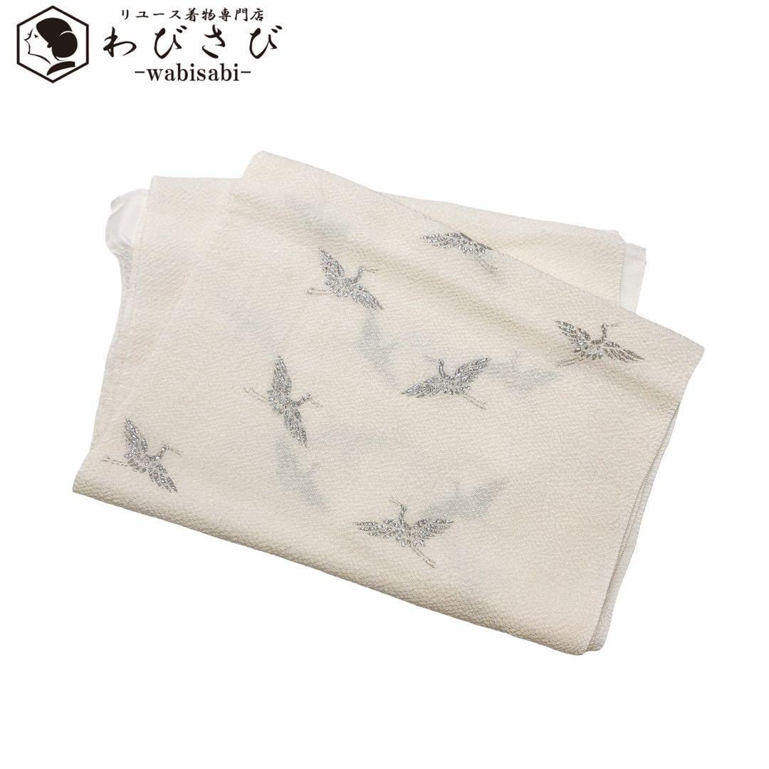 和装小物 帯揚げ 縮緬 正絹 鶴 銀彩 乳白色 礼装 C-5617 着物 きもの kimono 和服 和装 中古 リサイクル着物 【送料無料】
