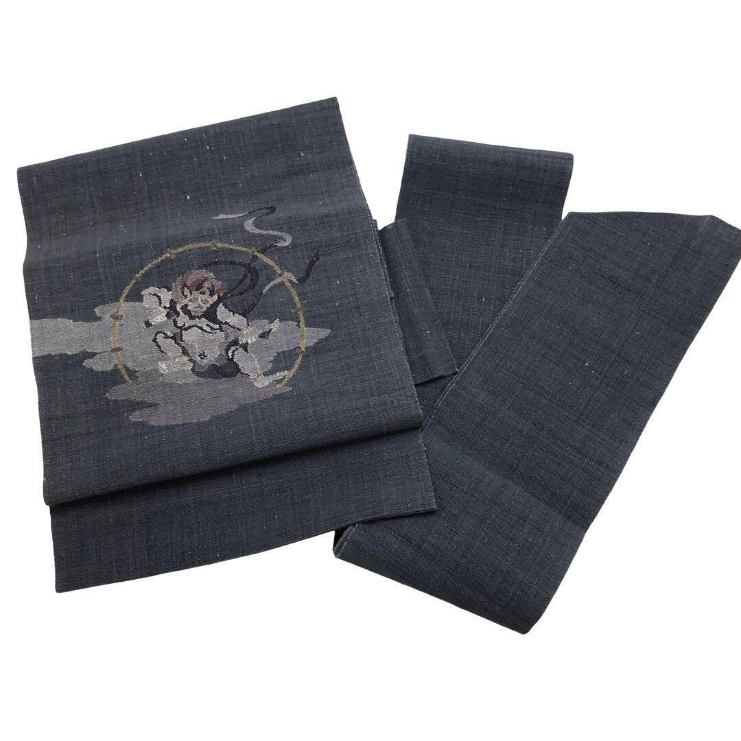 作り帯 付け帯 夏帯 名古屋帯 紗紬 風神雷神 紺鳶色 O-4816 着物 きもの kimono 和服 和装 中古 リサイクル着物 【送料無料】
