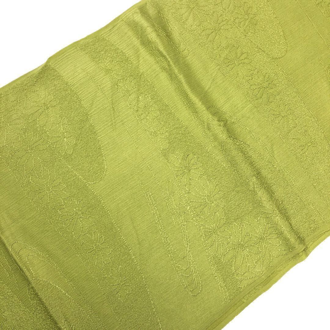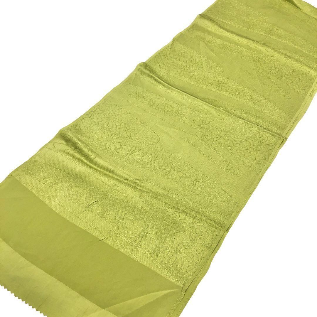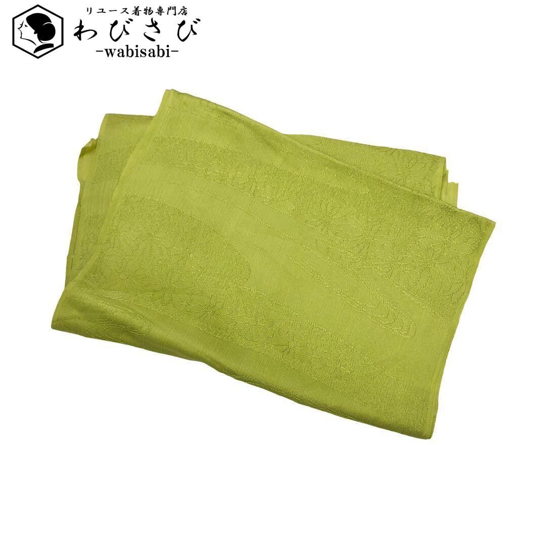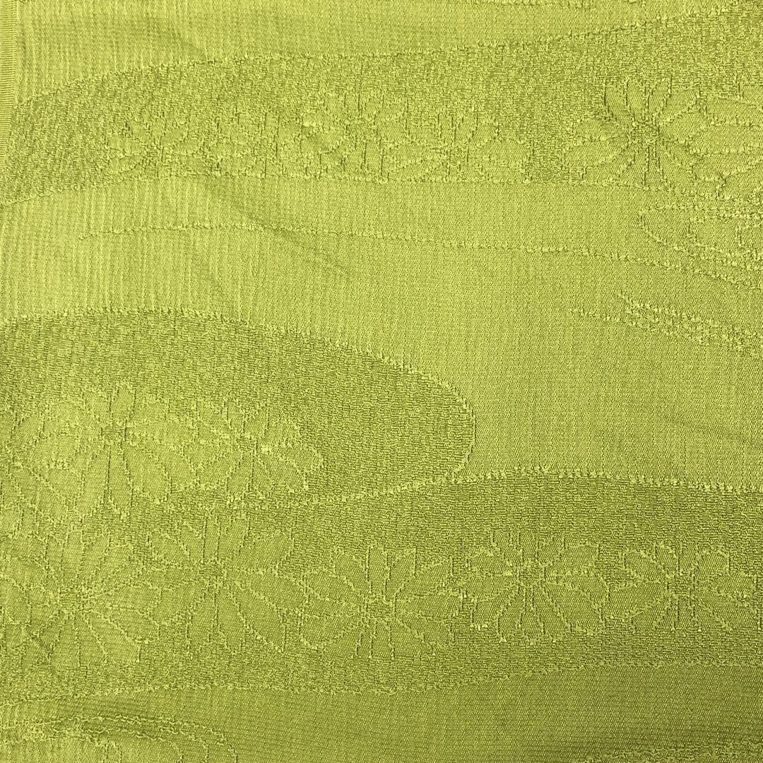 若苗色のお色味に花模様がデザインされた品のある素敵な柄裄のお品でございます。