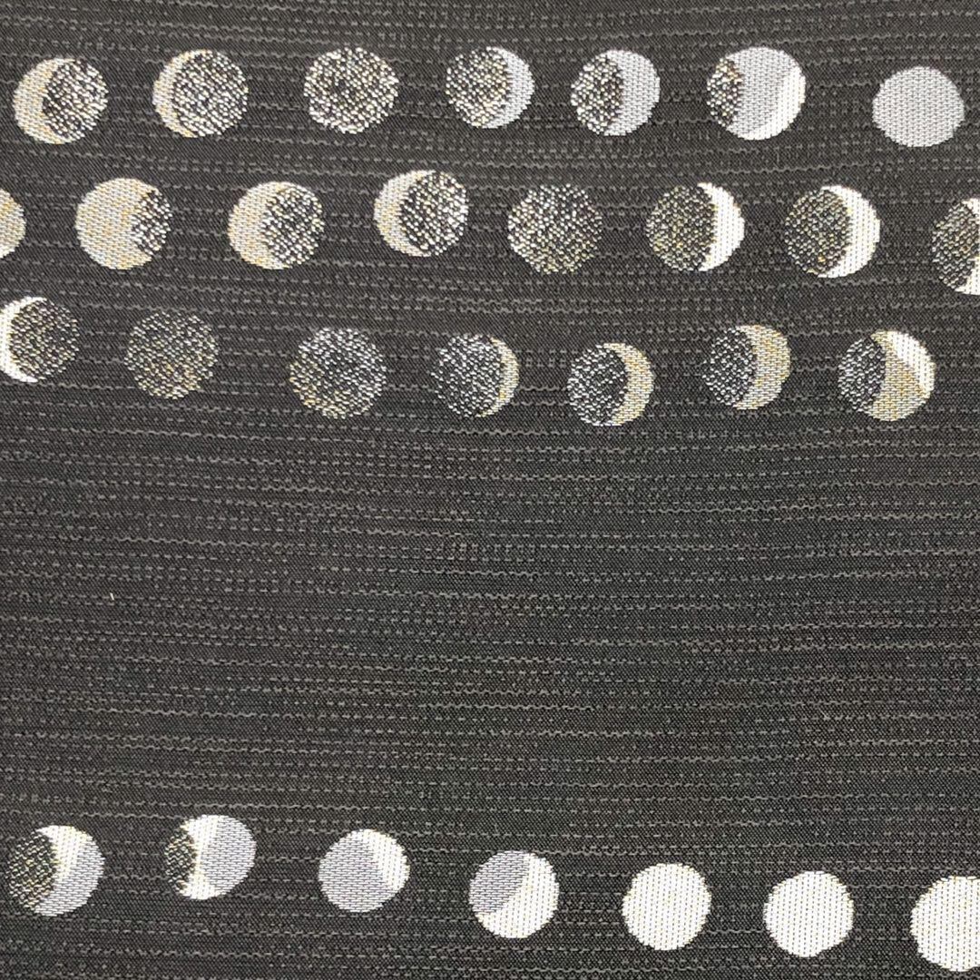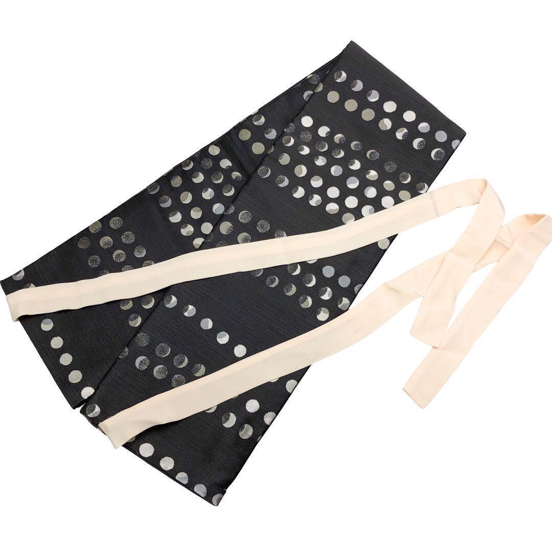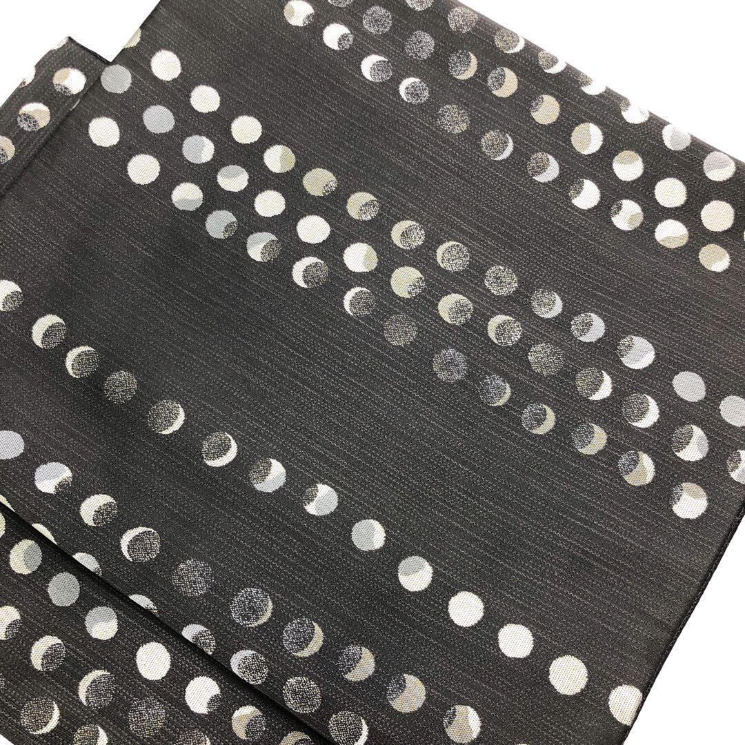 墨色ベースのお色味に月の満ち欠けの柄裄のドット柄がデザインされた雰囲気の良い素敵な柄裄のお品でございます。