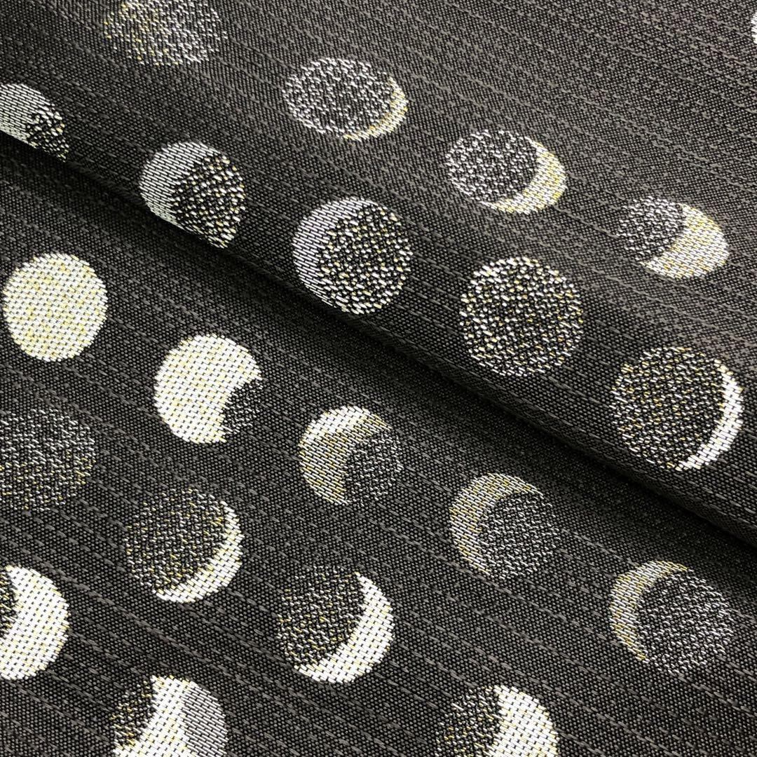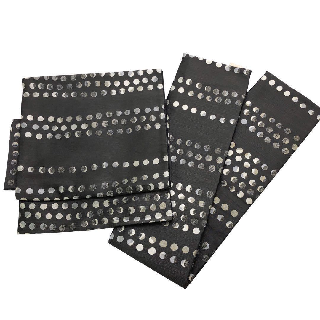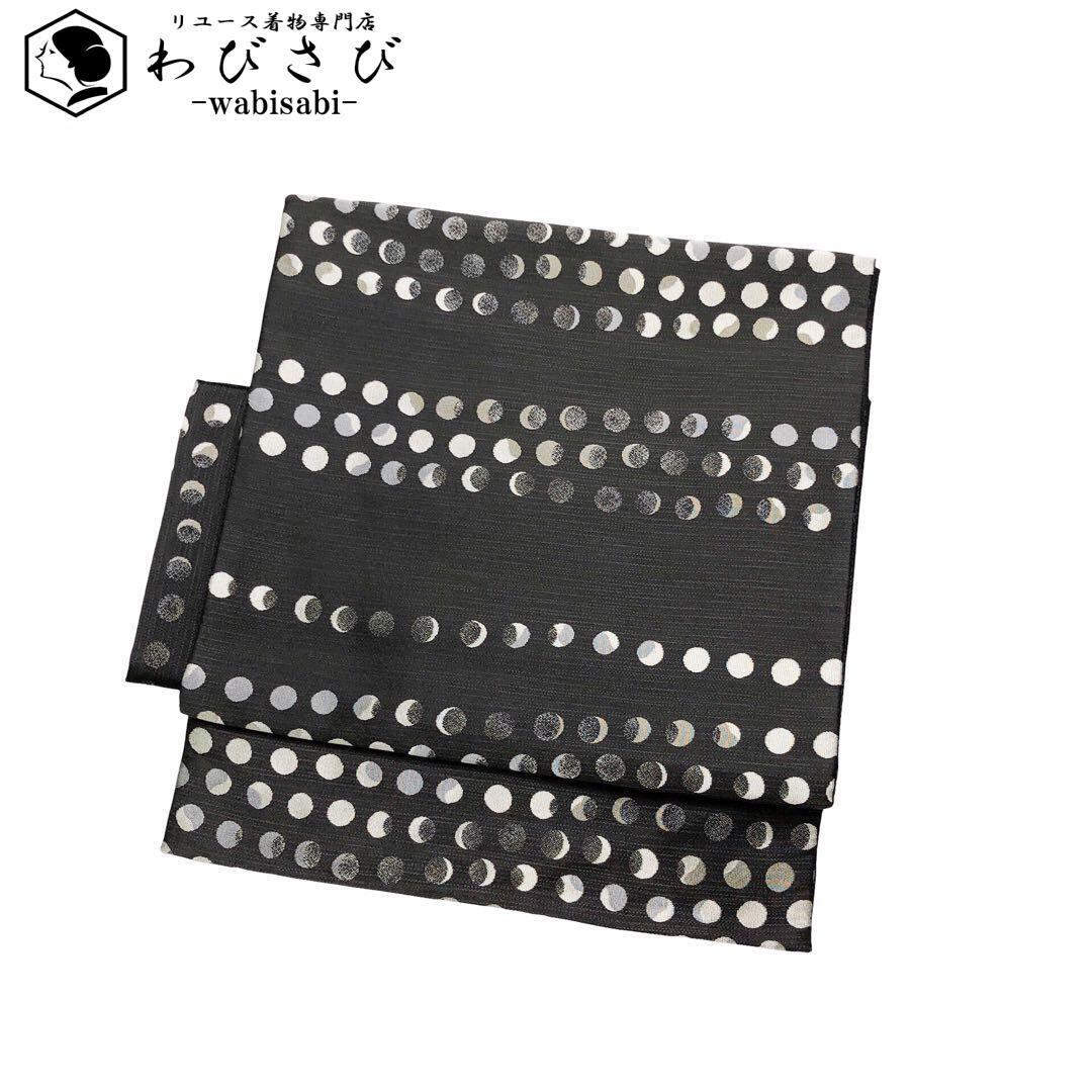 墨色ベースのお色味に月の満ち欠けの柄裄のドット柄がデザインされた雰囲気の良い素敵な柄裄のお品でございます。