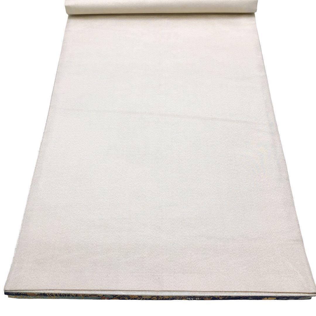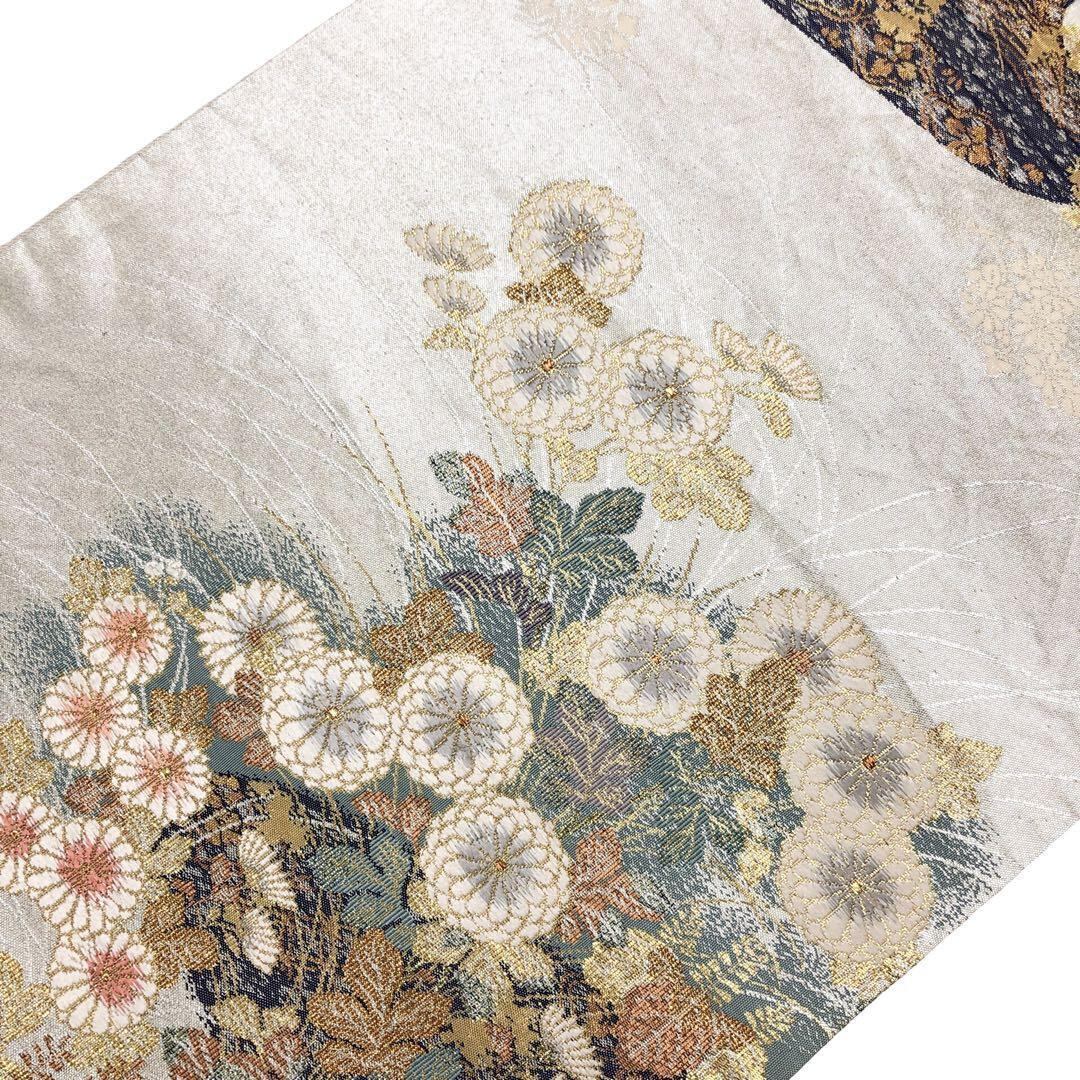 袋帯 段流水秋草文 草花模様 金銀糸 乳白色 O-4817 着物 きもの kimono 和服 和装 中古 リサイクル着物 【送料無料】