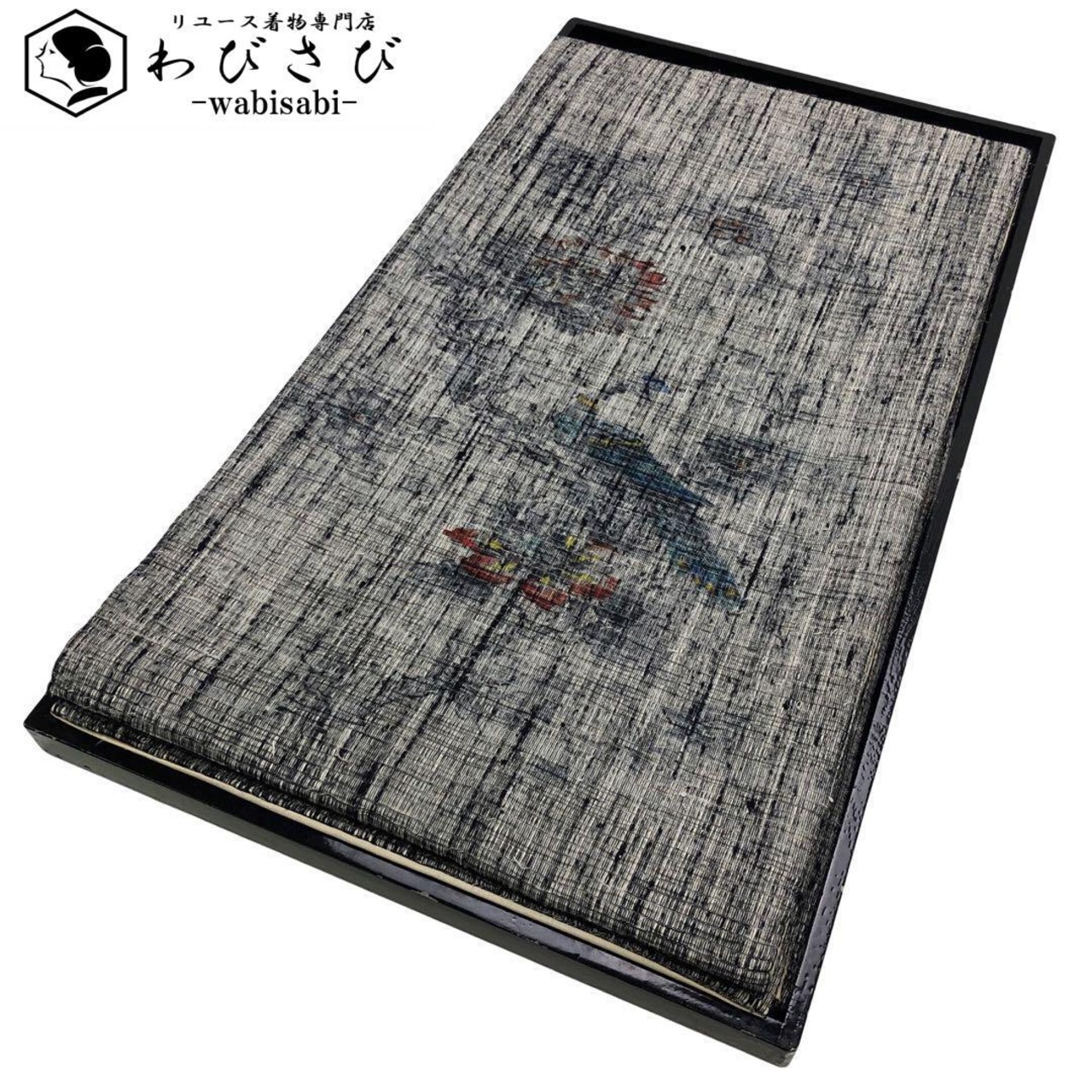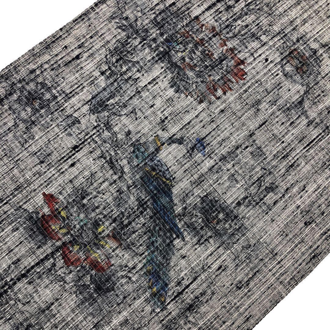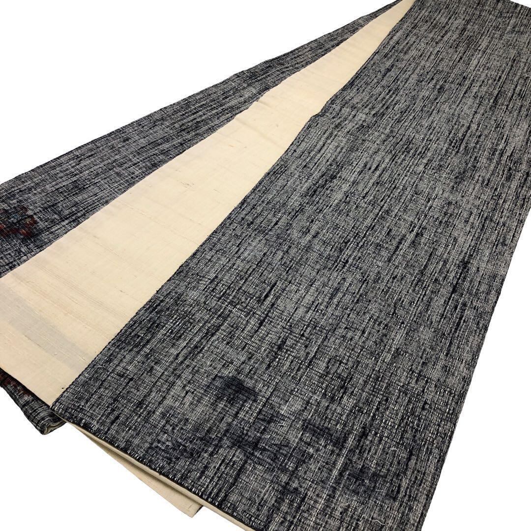 分業で作られる西陣織の中で異端な一人で全ての工程を仕上げる和泉博山の燻銀色の手触りの柔らかいふわりとした紬地に孔雀、花模様の独特の雰囲気が漂うデザインが印象深い素敵な柄裄のお品でございます。