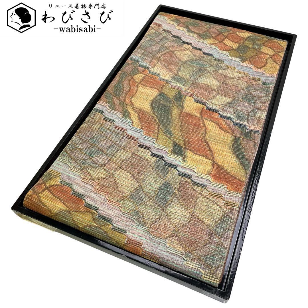 袋帯 瓦模様 斜め柄 立体的な織模様 カジュアル O-4801 着物 きもの kimono 和服 和装 中古 リサイクル着物 【送料無料】