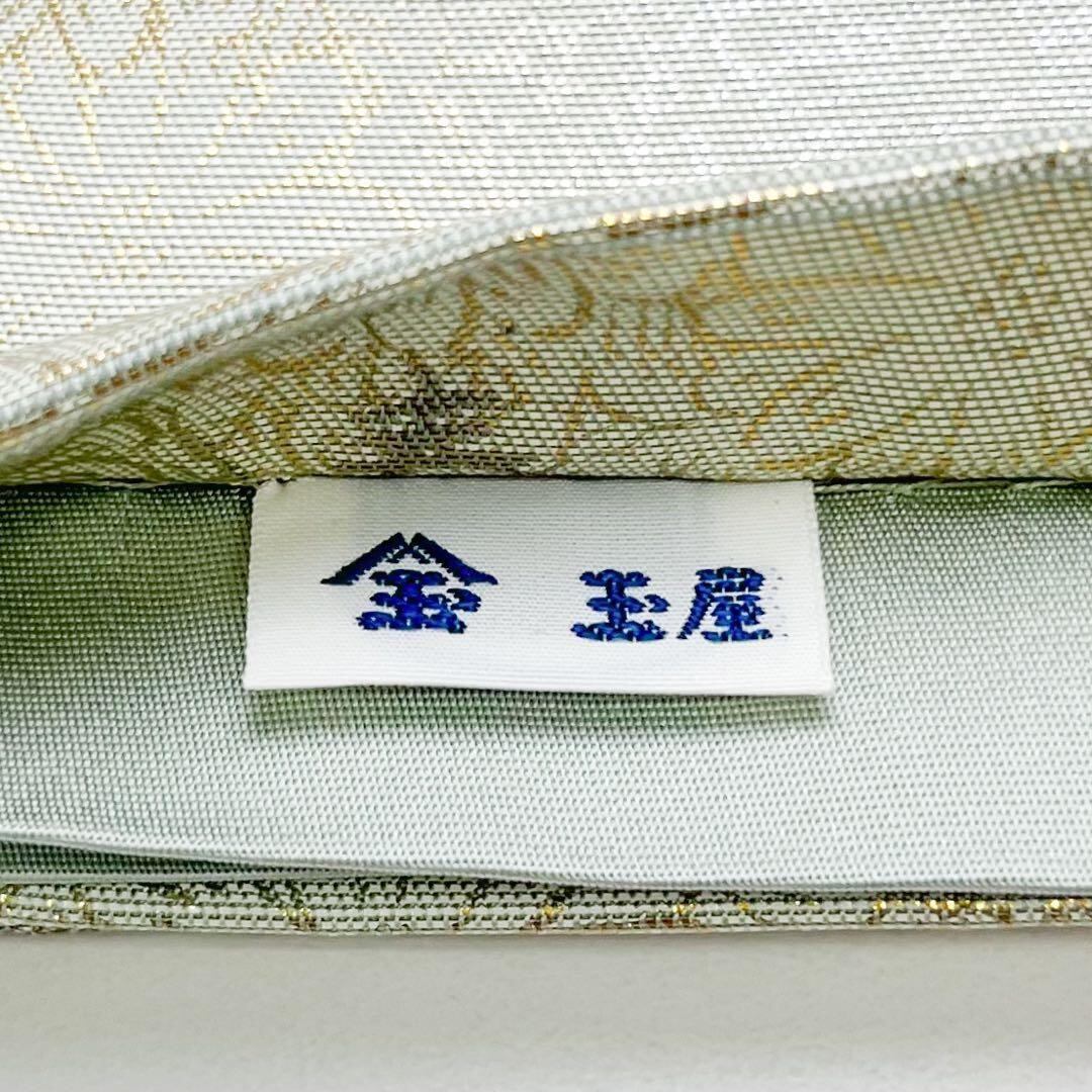 袋帯 研き出し沈金引箔袋 春椿 金銀糸 白緑色 O-4800 着物 きもの kimono 和服 和装 中古 リサイクル着物 【送料無料】