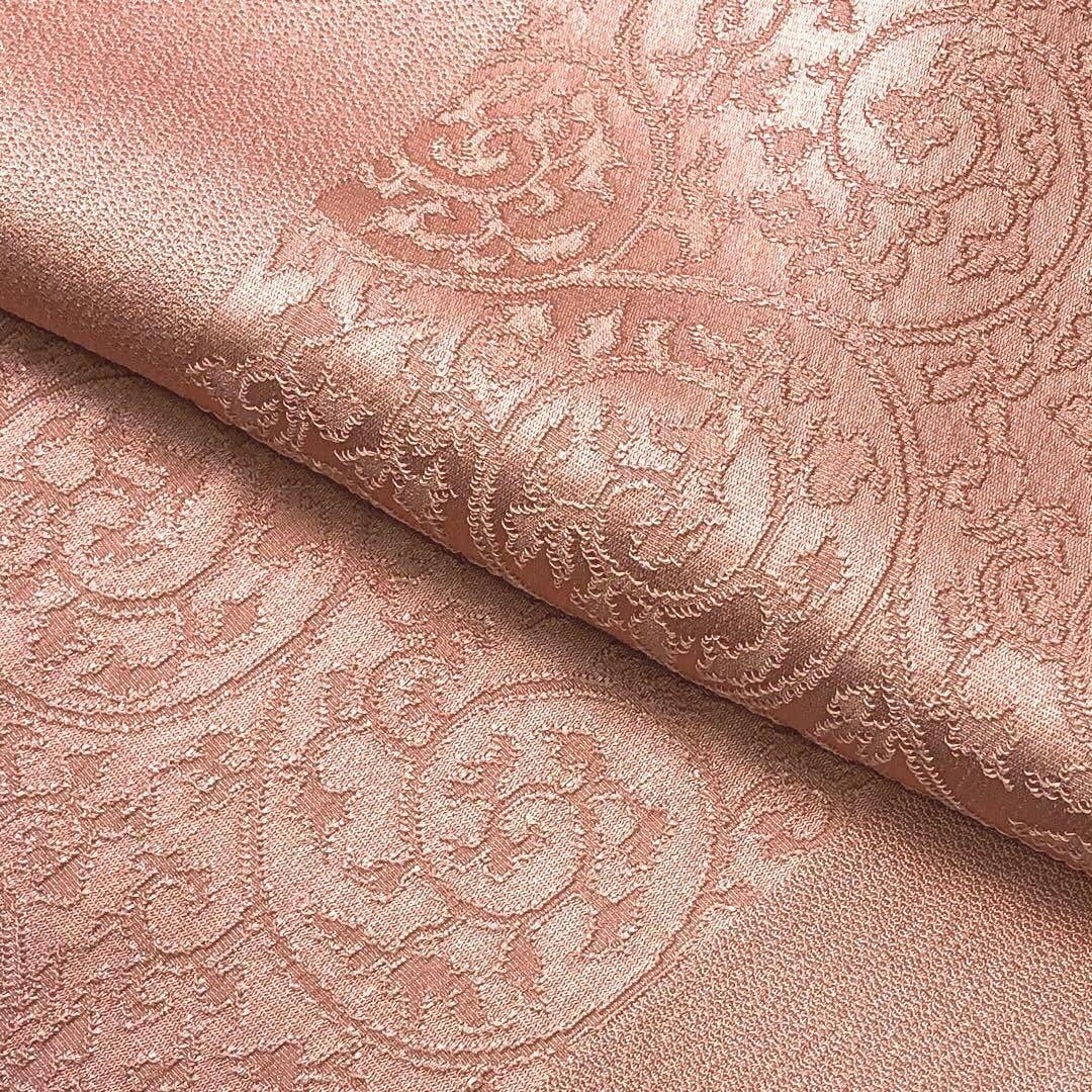乙女色のお色味に唐草模様がデザインされた品のある素敵な柄裄のお品でございます。