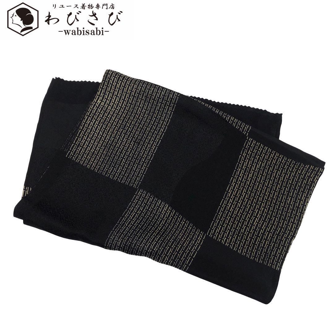 和装小物 帯揚げ 正絹 綸子 抽象格子模様 黒色 C-5637 着物 きもの kimono 和服 和装 中古 リサイクル着物 【送料無料】