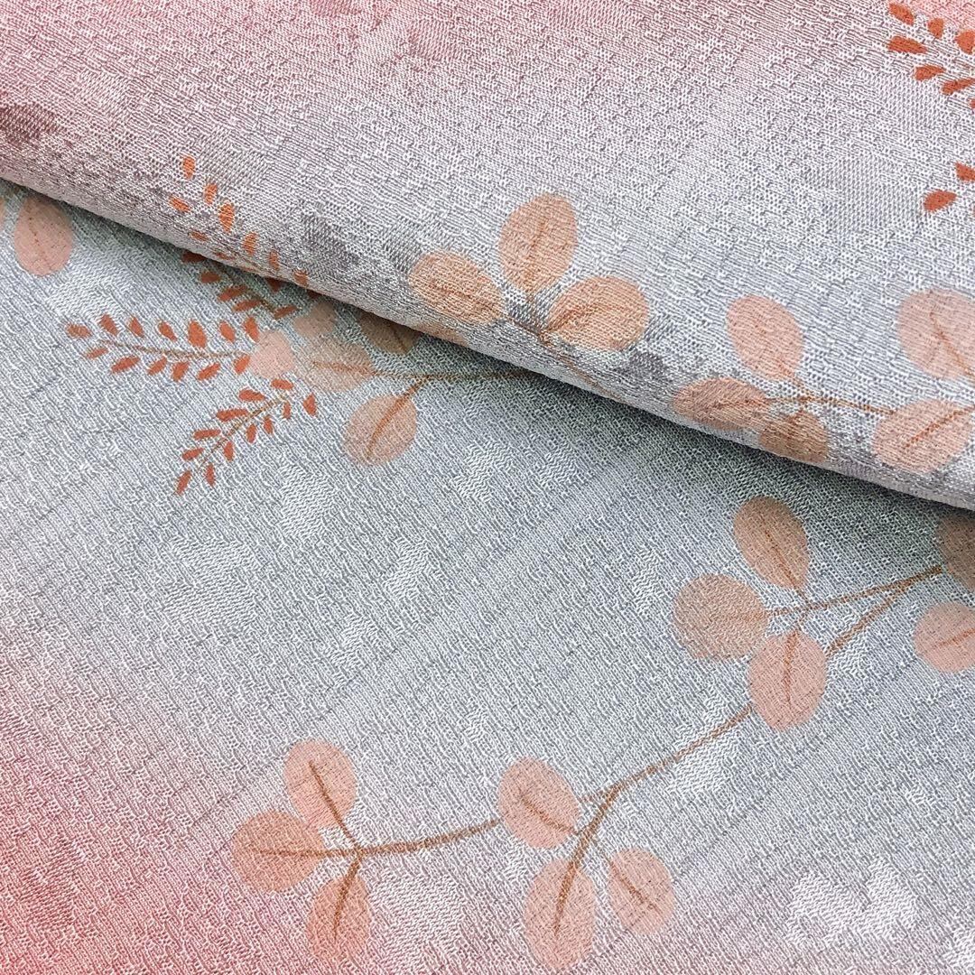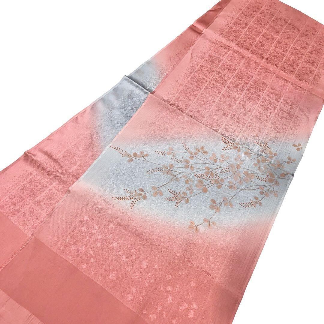 桃色のお色味の暈しに萩模様がデザインされた品のある素敵な柄裄のお品でございます。