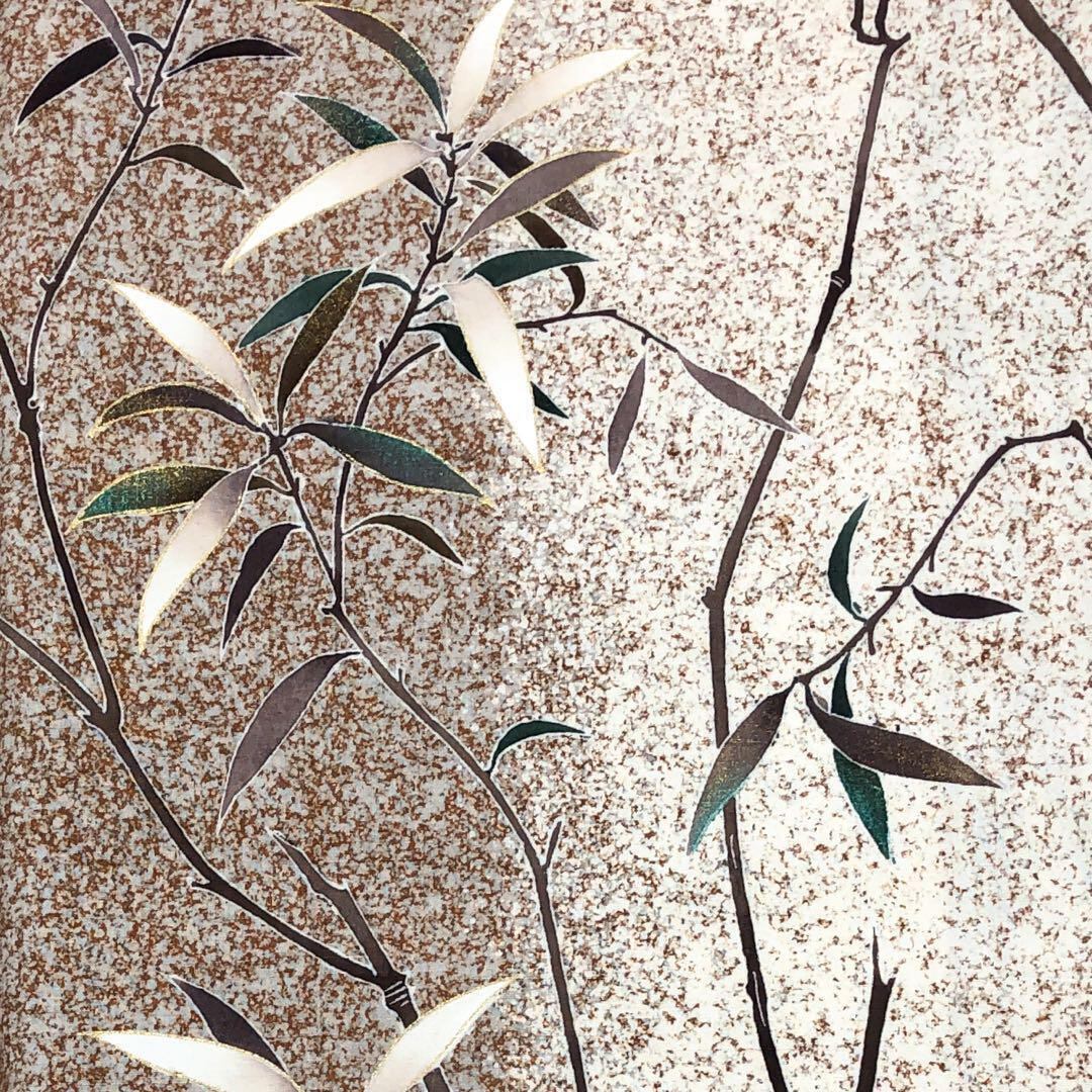 丁子茶色の落ち着きのあるお色味に叩き染に縦柄の暈し、枝葉模様の品のある柄裄がデザインされた素敵なお品でございます。