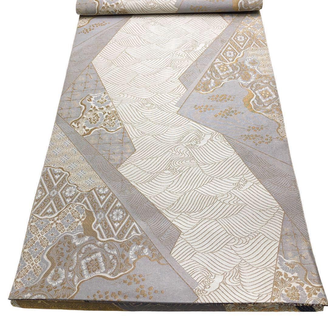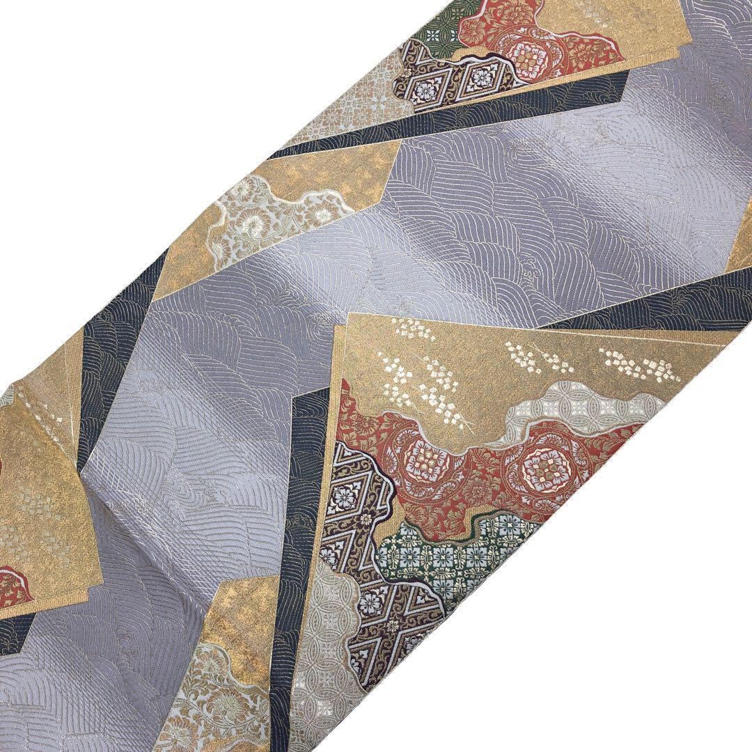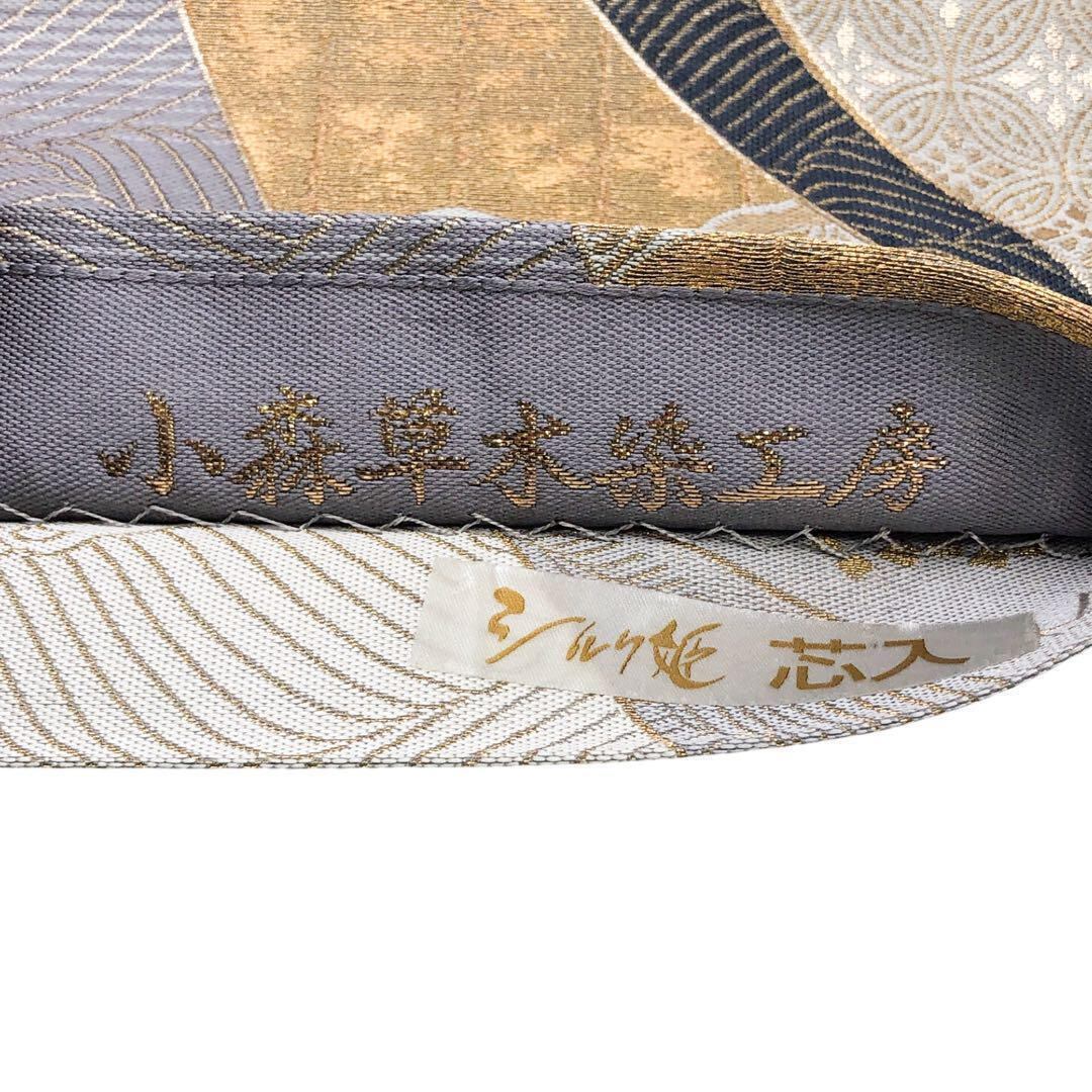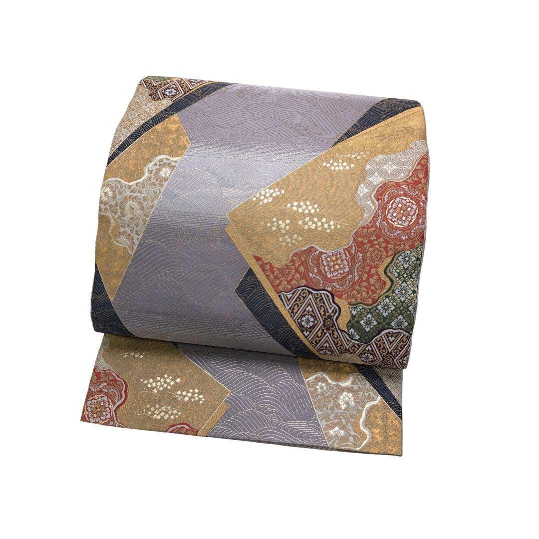 袋帯 小森草木染工房 小森久 歌仙裂取り 波に華柄模様 淡藤色 O-4841 着物 きもの kimono 和服 和装 中古 リサイクル着物 【送料無料】