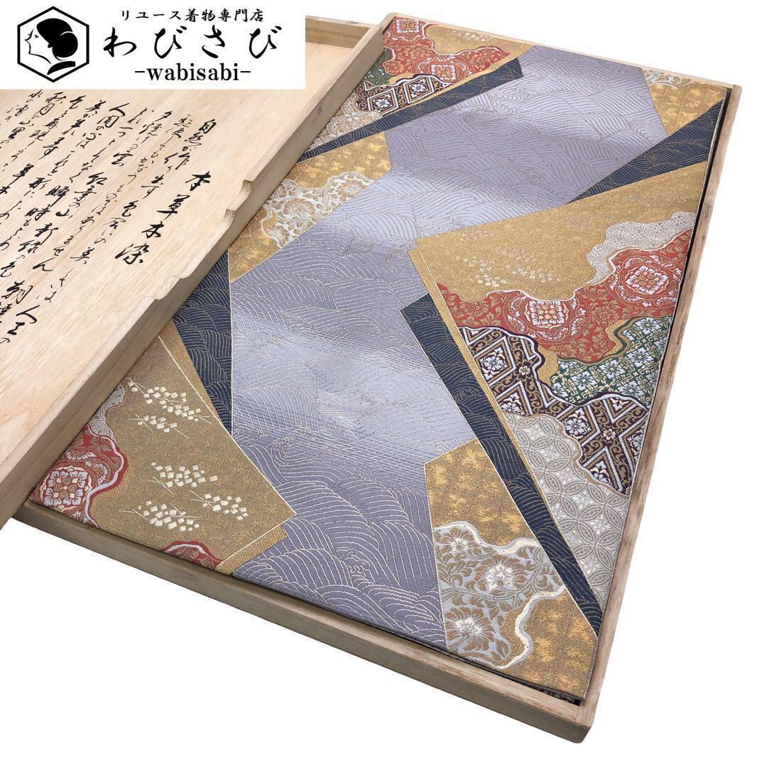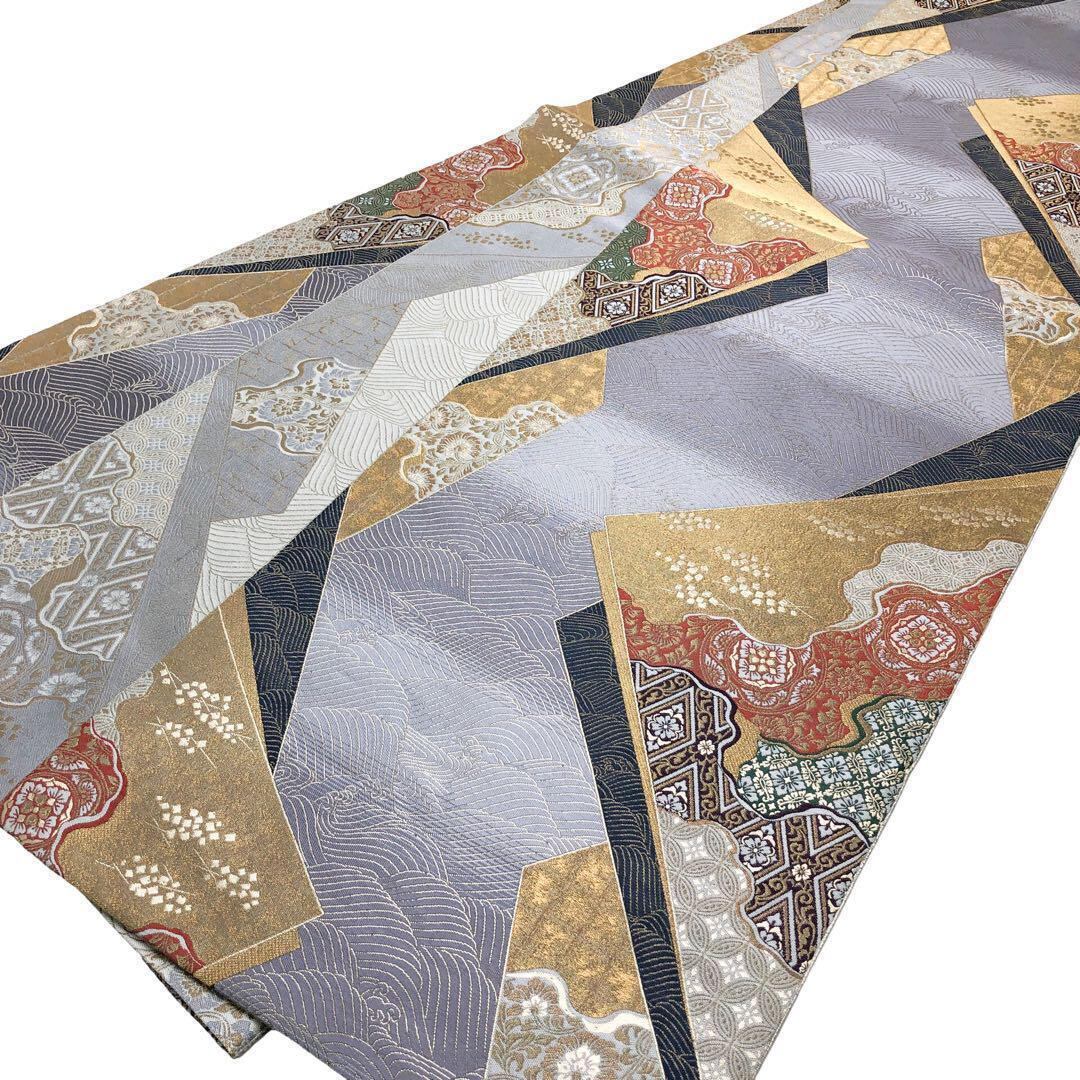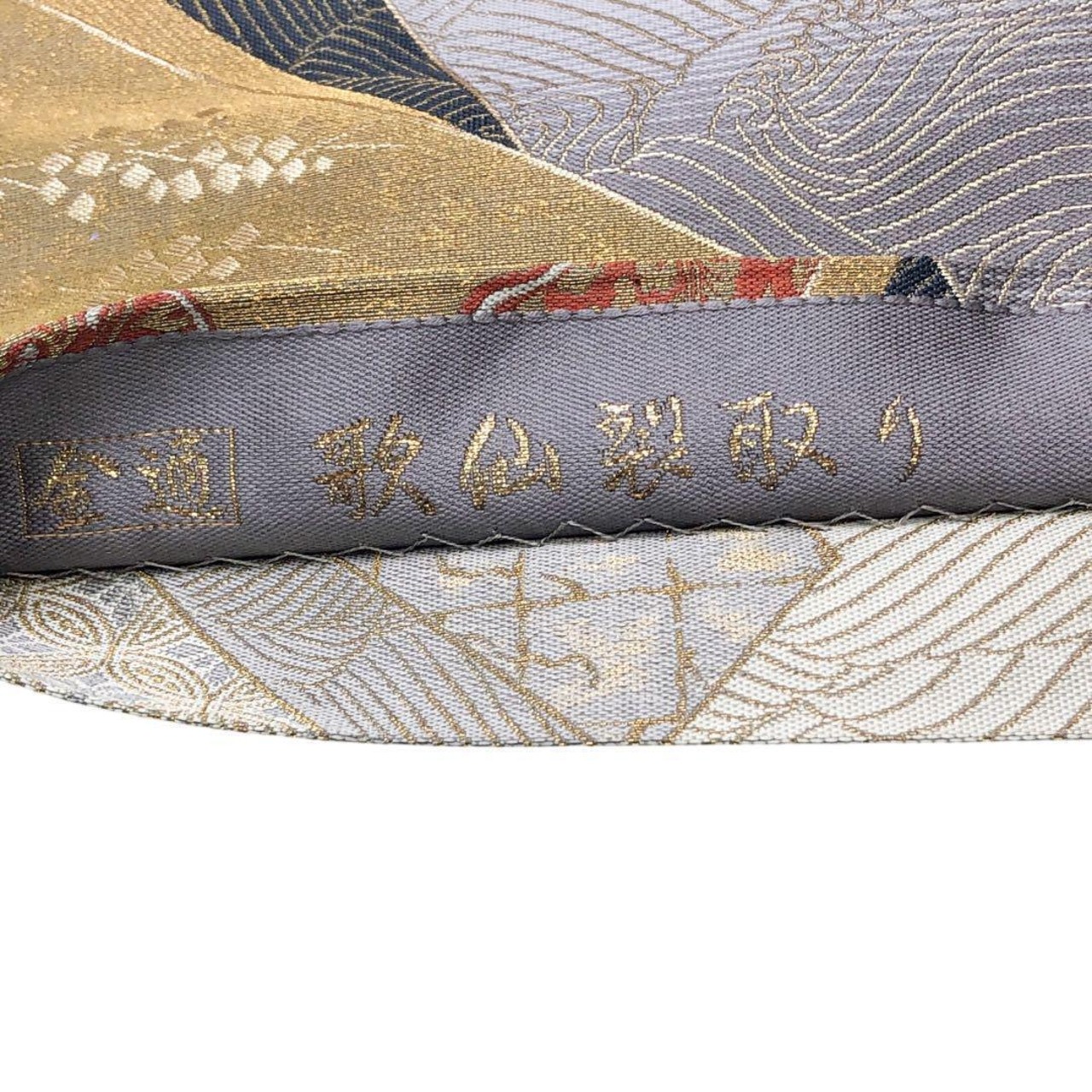 袋帯 小森草木染工房 小森久 歌仙裂取り 波に華柄模様 淡藤色 O-4841 着物 きもの kimono 和服 和装 中古 リサイクル着物 【送料無料】