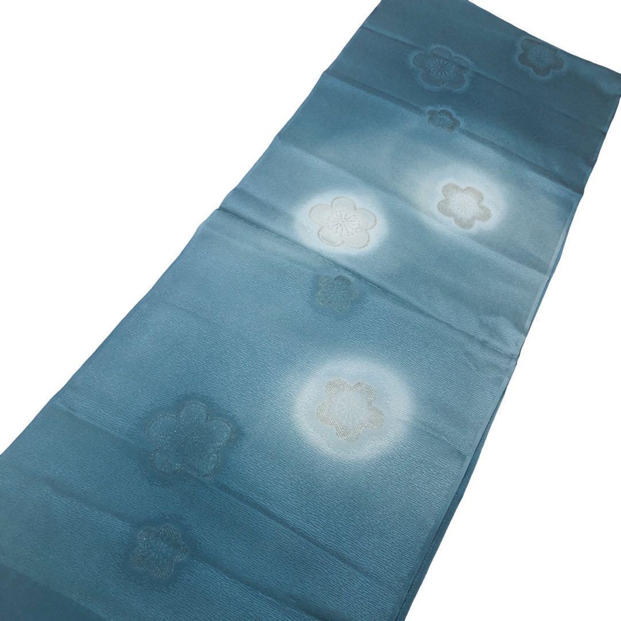 和装小物 帯揚げ 正絹 綸子 暈し 梅の花模様 納戸色 金糸 C-5654 着物 きもの kimono 和服 和装 中古 リサイクル着物 【送料無料】