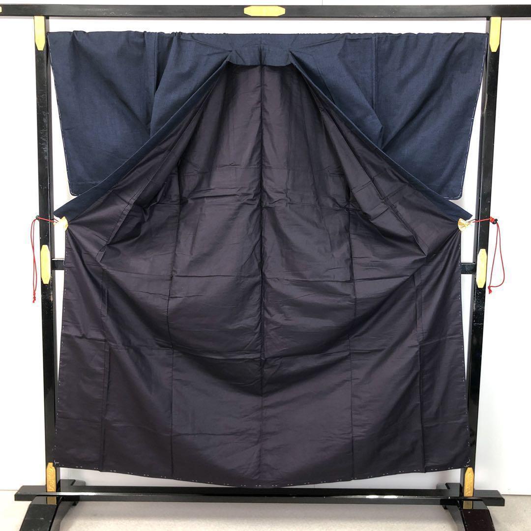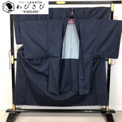 濃藍色の落ち着いたお色味の無地の紬地の雰囲気の良い素敵なお品でございます。
