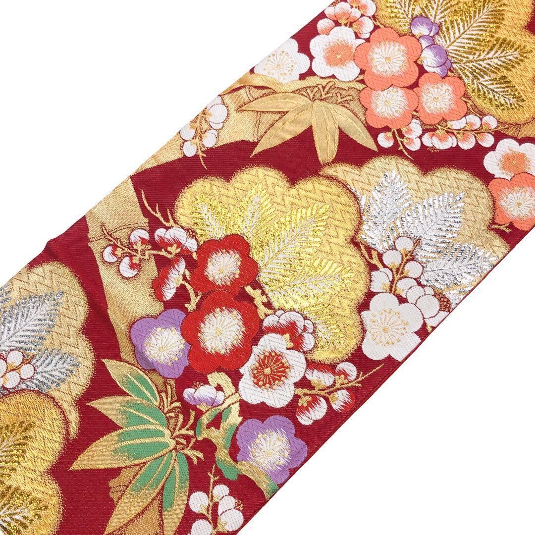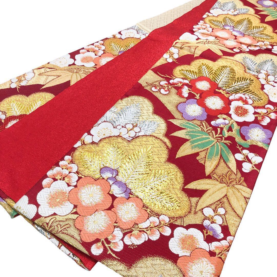 袋帯 煌びやかな松竹梅 金銀糸 赤色 振袖 O-4821 着物 きもの kimono 和服 和装 中古 リサイクル着物 【送料無料】