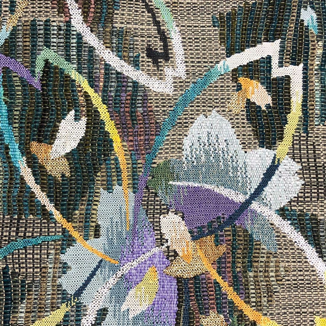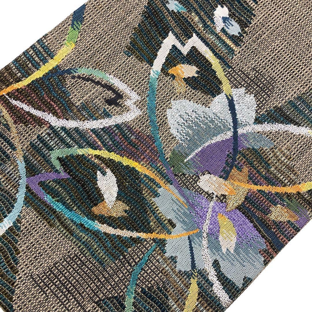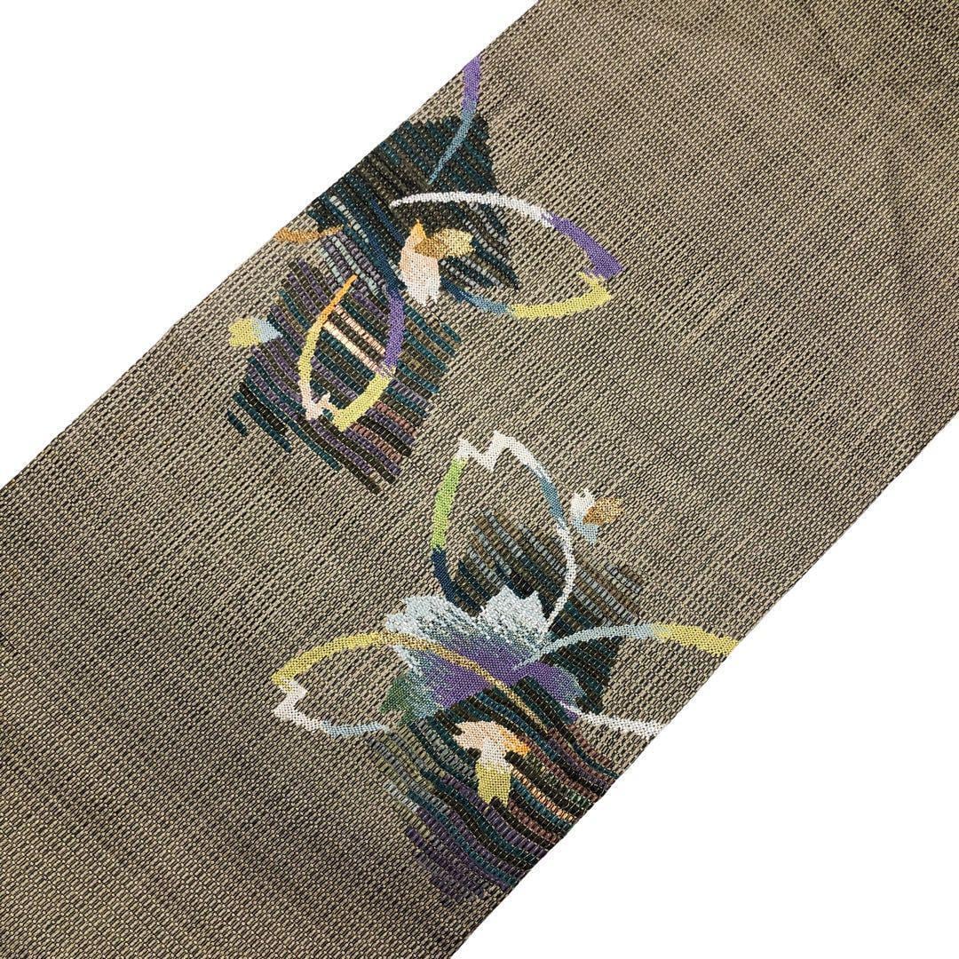 亜麻色の雰囲気の良いお色味に色鮮やかな桜の花模様の柄裄がデザインされた素敵なお品でございます。