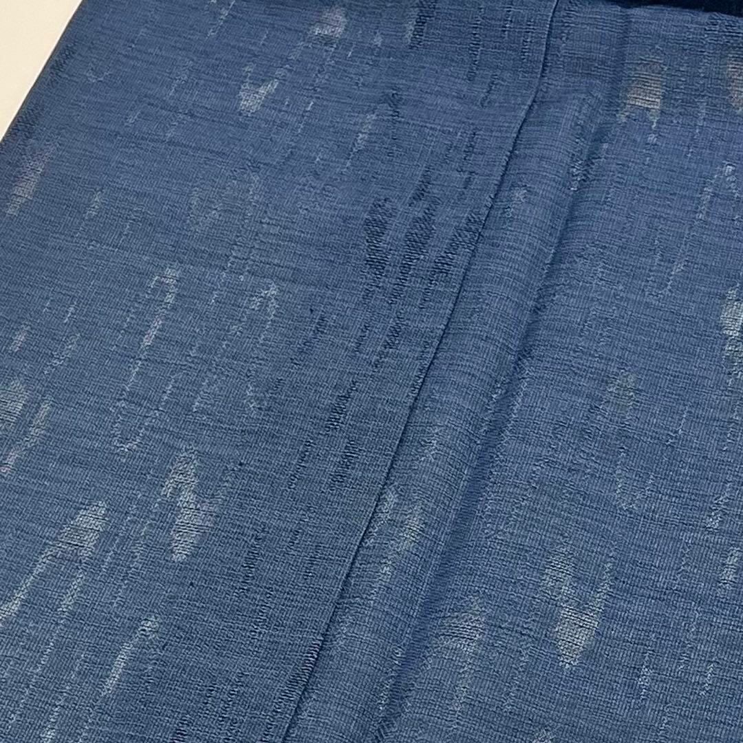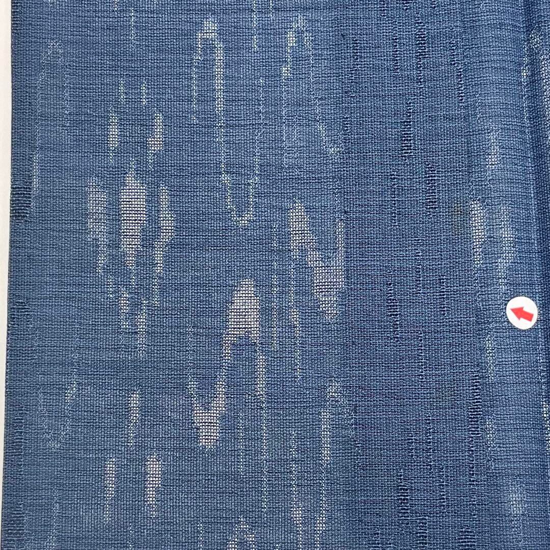 青黛色の落ち着きのある青味の紗紬、縦柄の透け感のある流水模様がデザインされた涼しげな柄裄のお品でございます。