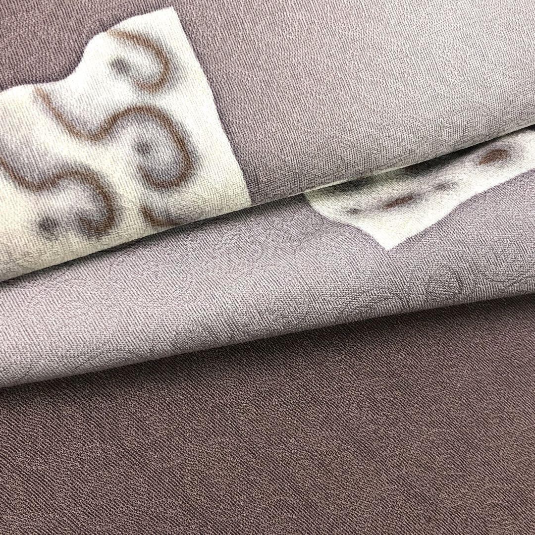 紫鼠色のお色味に暈し、抽象模様の柄裄がデザインされた素敵なお品でございます。