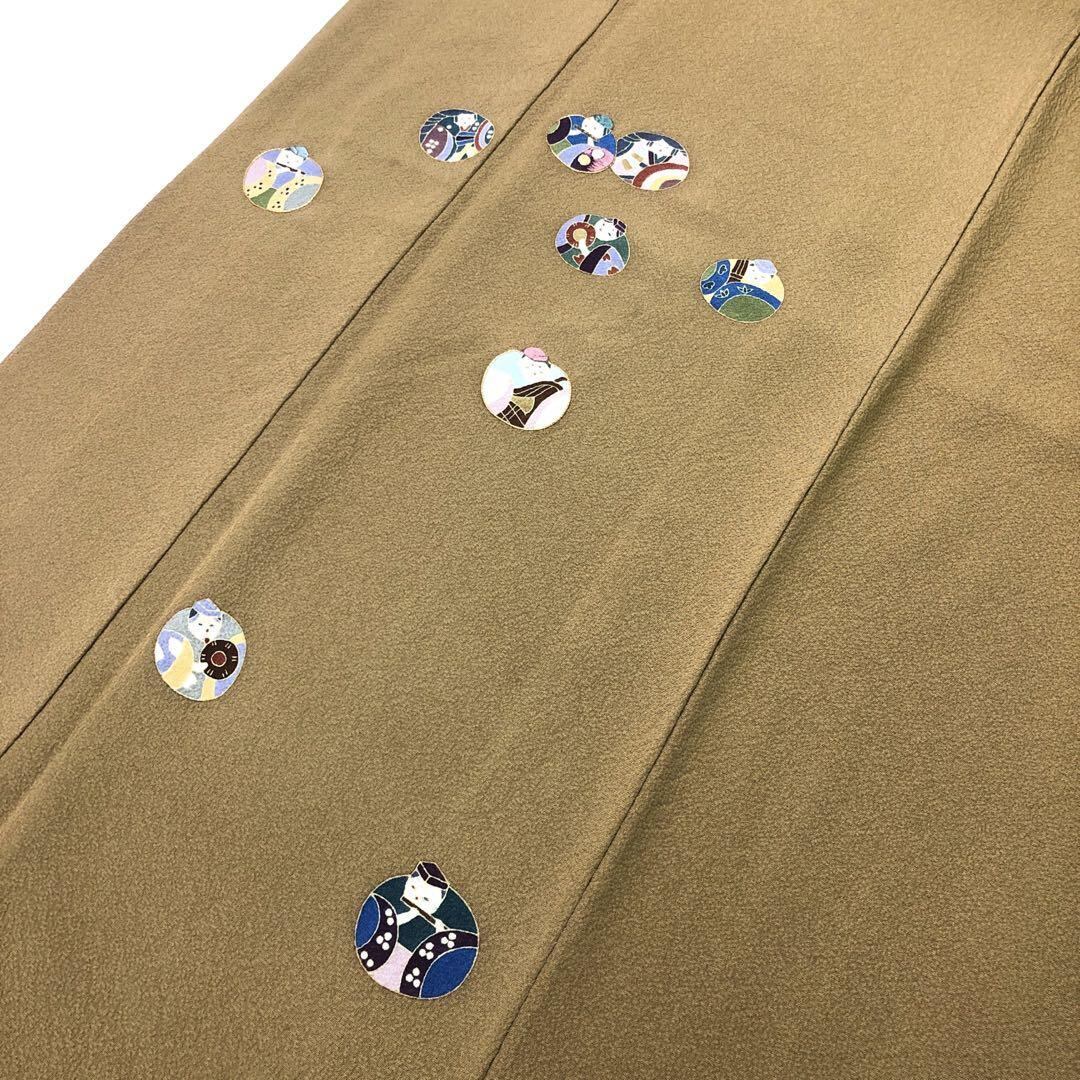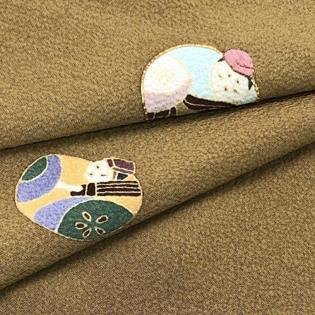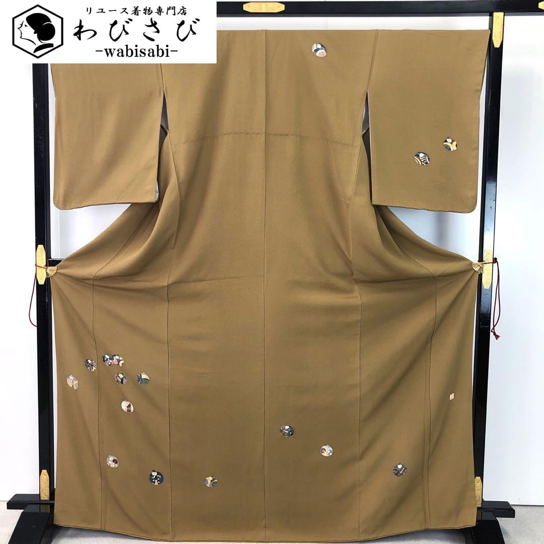 付下げ 作家物 五人囃子 和楽器 刺繍 縮緬 桑染色 トールサイズ K-4483 着物 きもの kimono 和服 和装 中古 リサイクル着物 【送料無料】