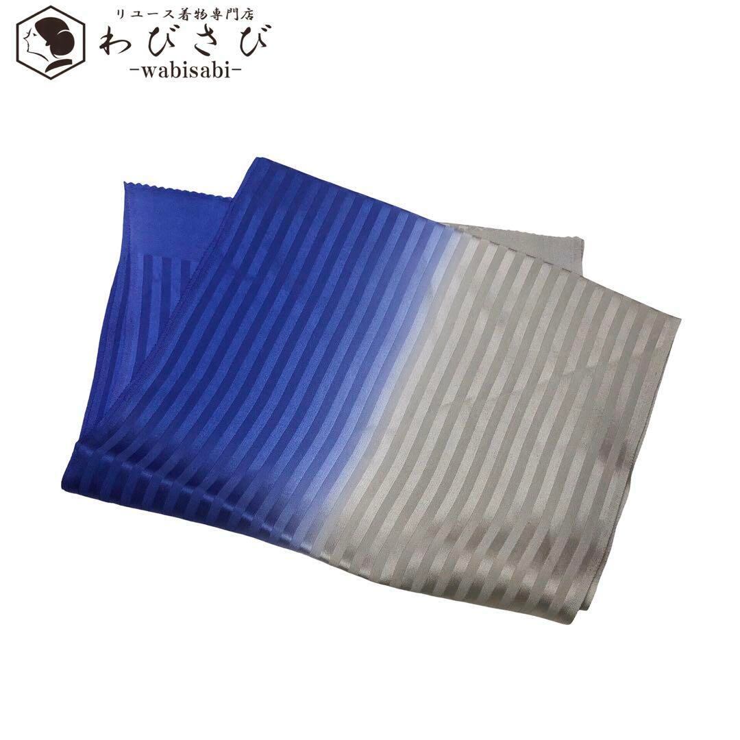 和装小物 帯揚げ 正絹 綸子 染め分け 縦縞模様 青色 C-5659 着物 きもの kimono 和服 和装 中古 リサイクル着物 【送料無料】