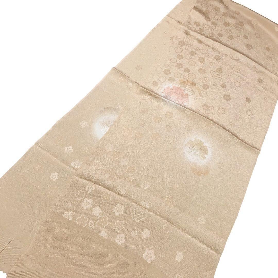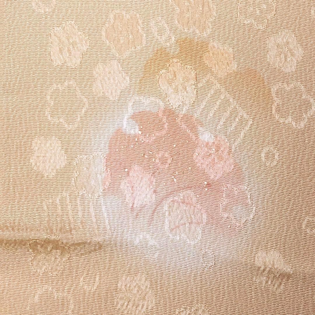 尾花色のお色味のに暈しや雪輪に花模様がデザインされた品のある素敵な柄裄のお品でございます。