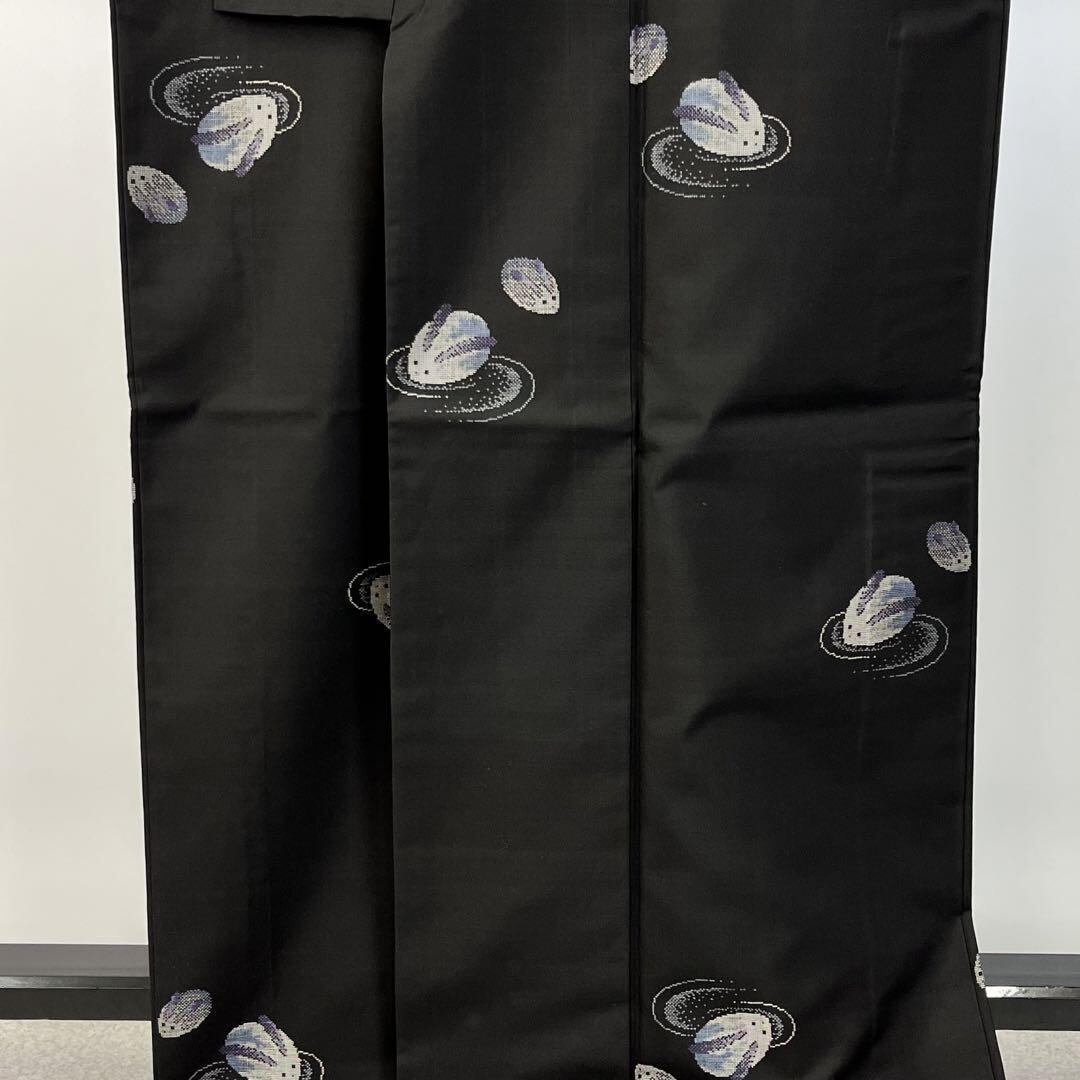 雰囲気の良い泥染の黒色、雪うさぎの絣の柄裄がデザインされた可愛らしい素敵なお品でございます。