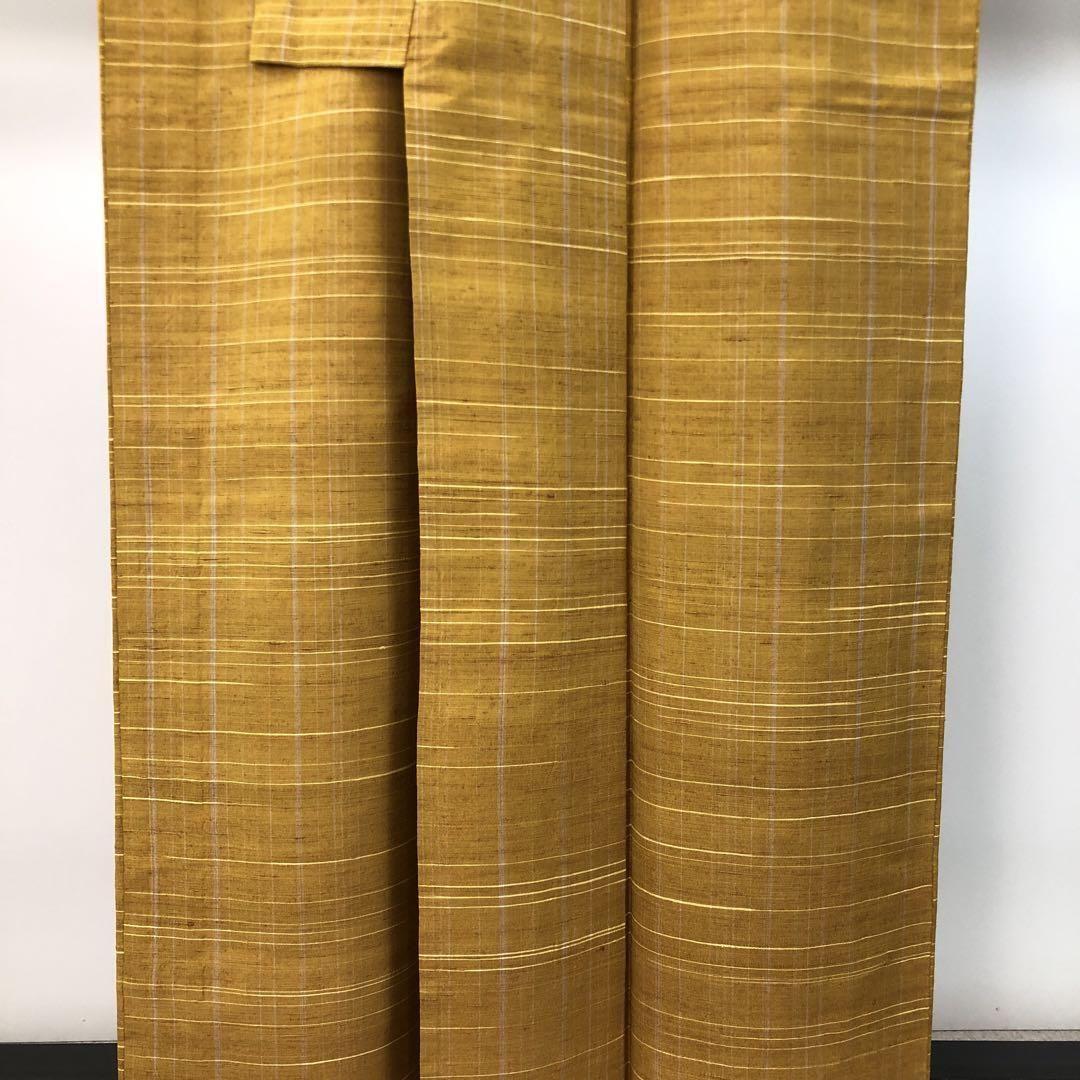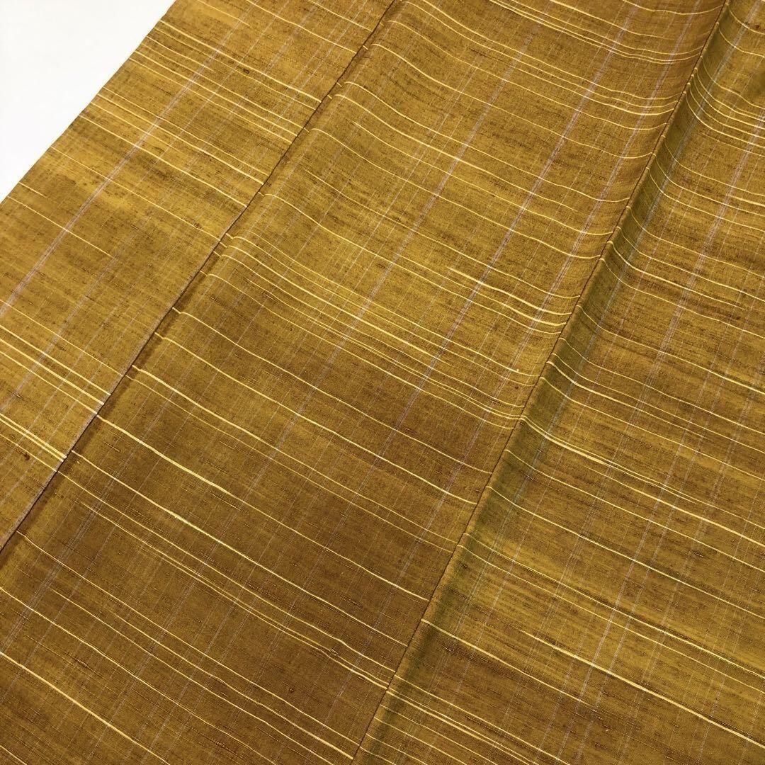 単衣 紬 縦横縞の織模様 黄土色 K-4492 着物 きもの kimono 和服 和装 中古 リサイクル着物 【送料無料】
