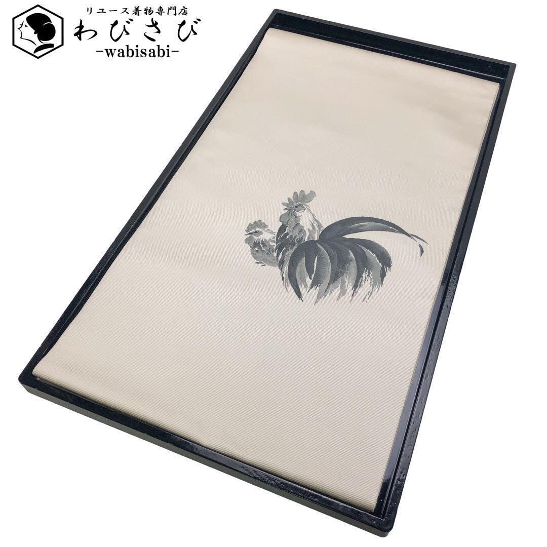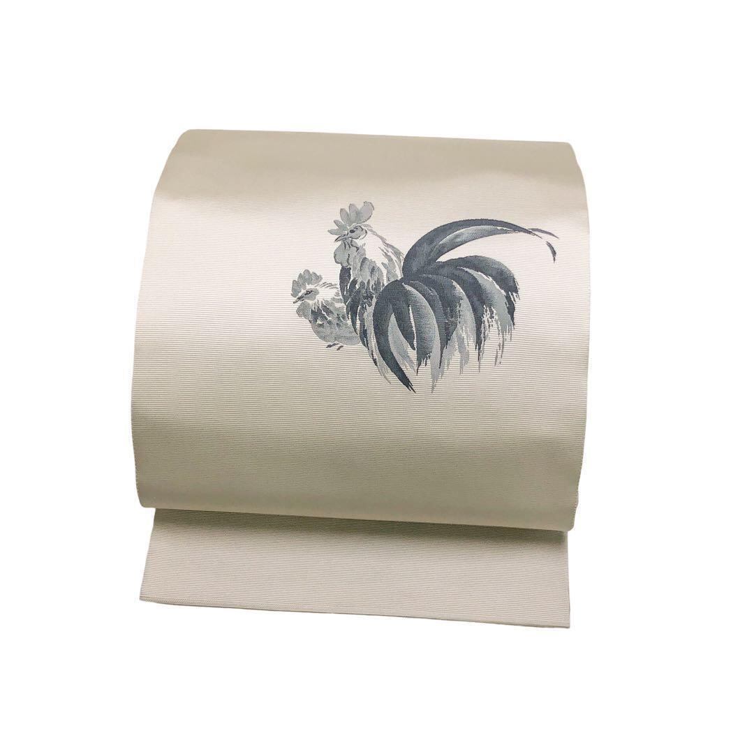 和暖と題された練色の上品なお色味に2羽のニワトリの雰囲気の良い柄裄がデザインされた素敵なお品でございます。