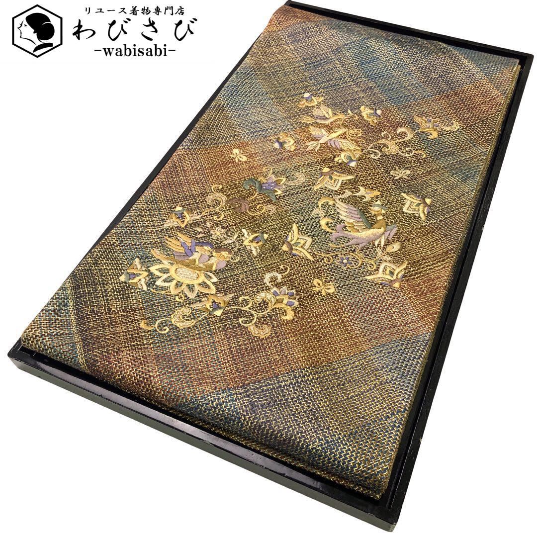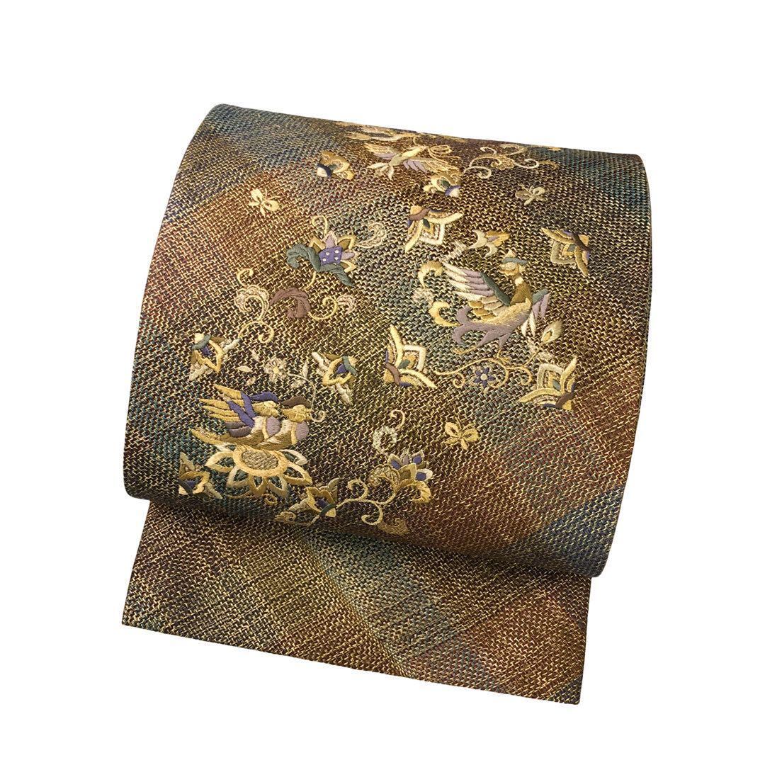 袋帯 花唐草模様に花喰い鳥 鴛鴦 刺繍 美しい織模様 金糸 O-4857 着物 きもの kimono 和服 和装 中古 リサイクル着物 【送料無料】
