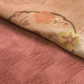 鴇色鼠色のお色味の暈しに梅な花模様がデザインされた品のある素敵な柄裄のお品でございます。