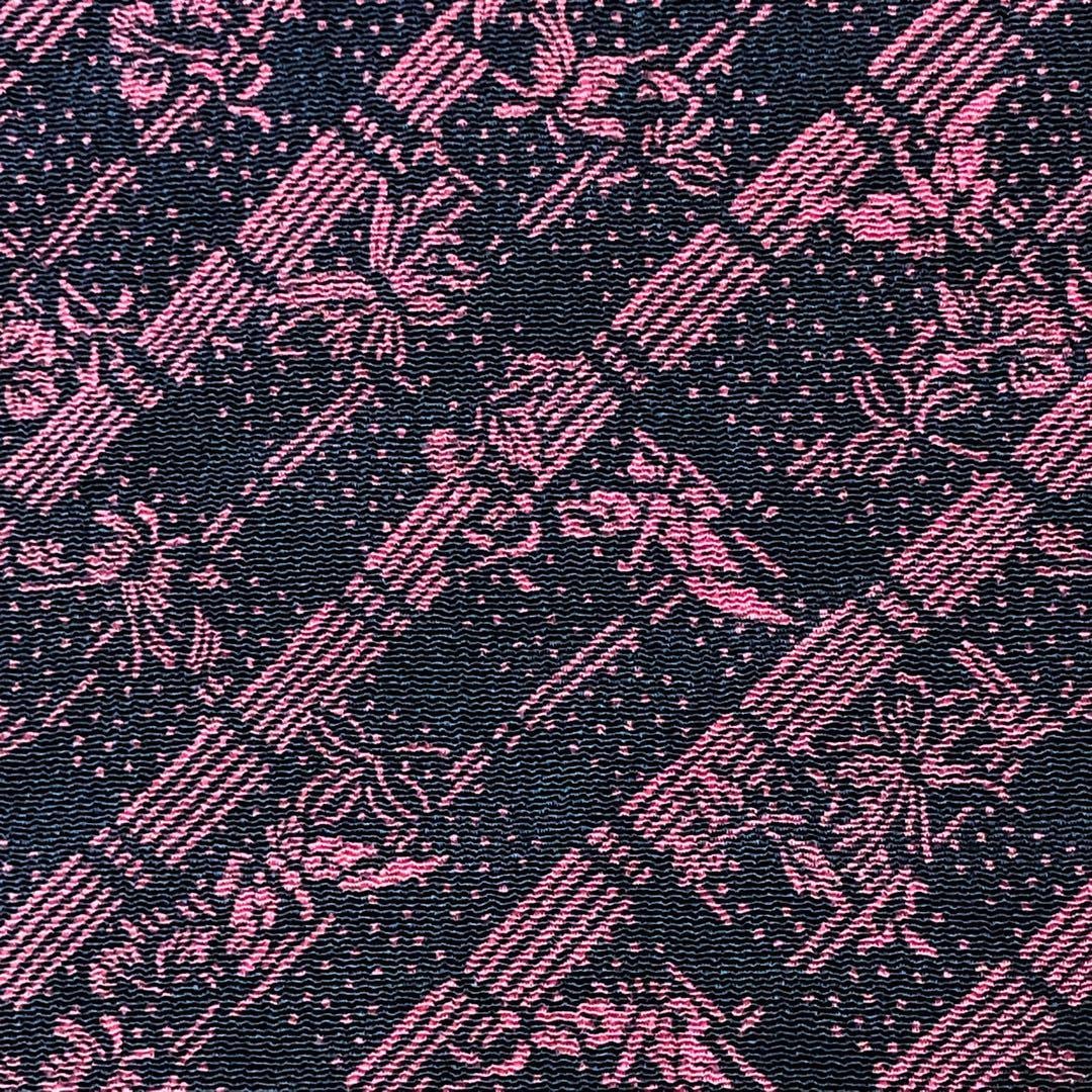 濃紺色のお色味に蝶々に花模様がデザインされた品のある素敵な柄裄のお品でございます。