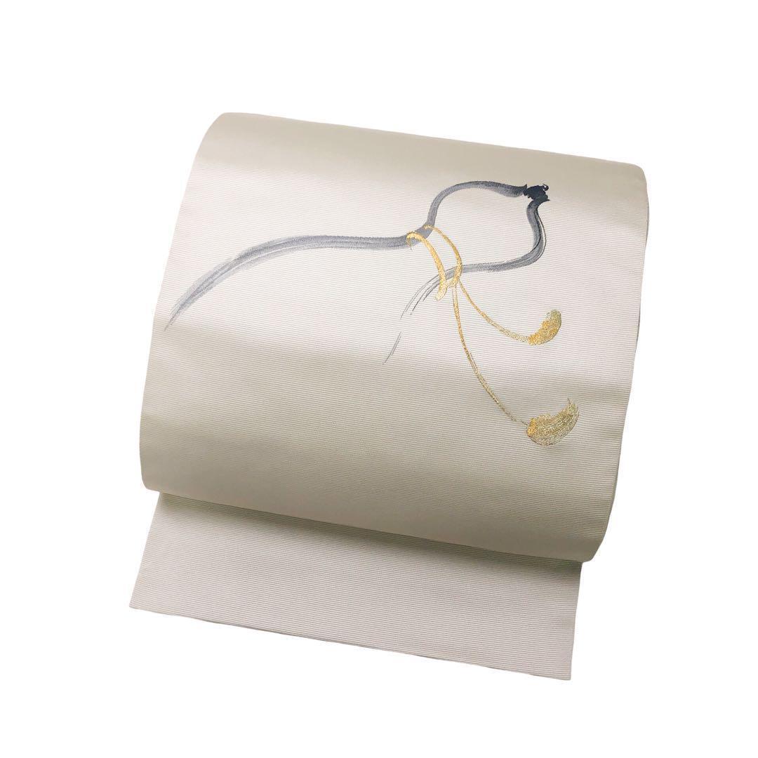 砥粉色の上品なお色味に六瓢息災の瓢箪の柄裄がデザインされた雰囲気の良い素敵なお品でございます。