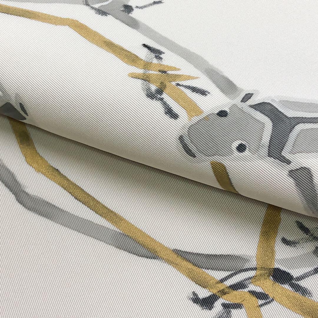 真珠色の上品なお色味に手描きの魚の柄裄がデザインされた雰囲気の良い素敵なお品でございます。