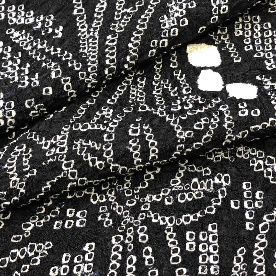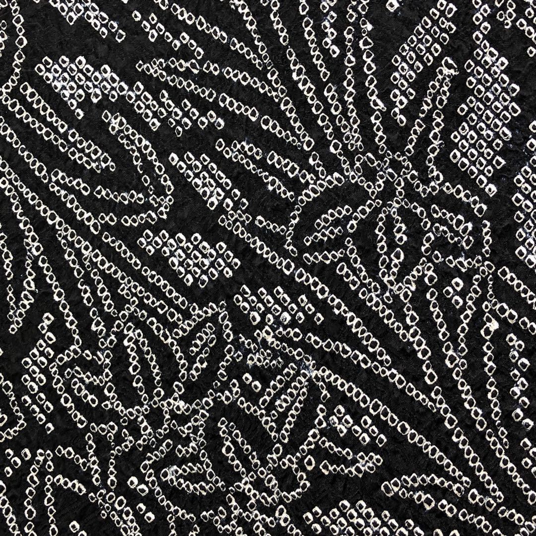 黒色のモノトーンのお色味に絞りの花柄模様の柄裄がデザインされた素敵なお品でございます。
