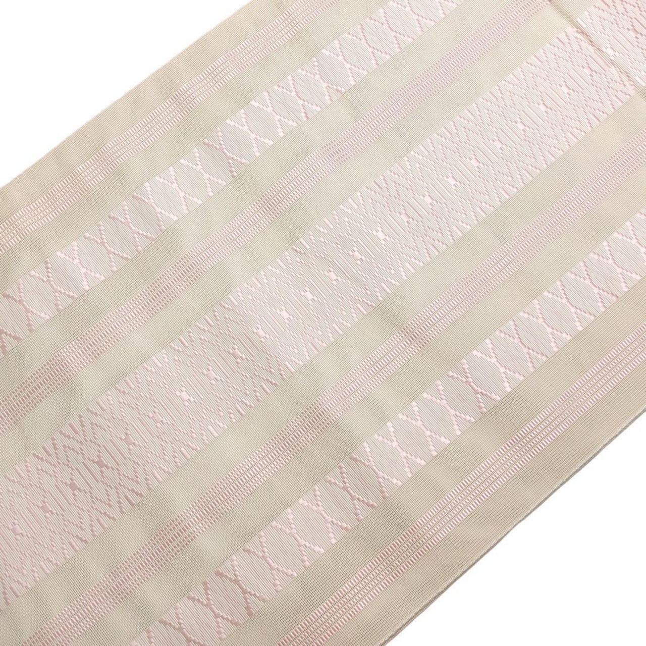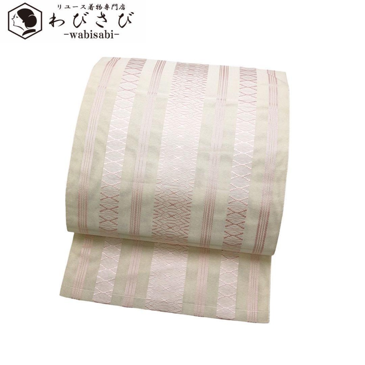 夏帯 名古屋帯 本場筑前博多織 紗献上 乳白色 O-4884 着物 きもの kimono 和服 和装 中古 リサイクル着物 【送料無料】