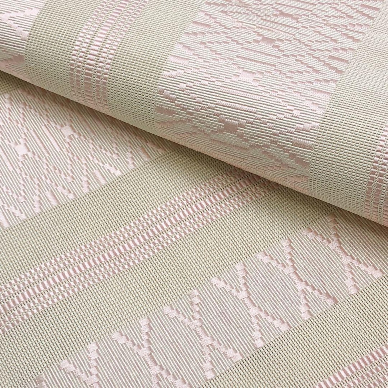 乳白色のお色味に淡い薄桃色の献上柄がデザインされた素敵なお品でございます。
