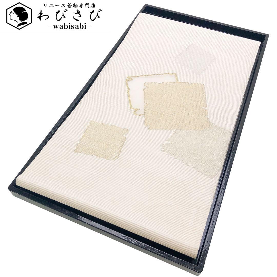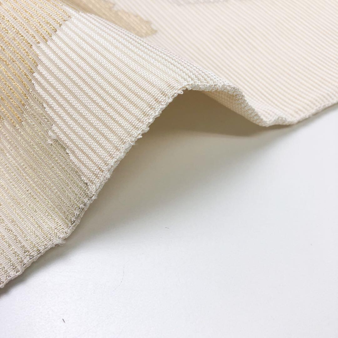 生成色のお色味に金銀糸をつかった四角模様がデザインされた素敵なお品でございます。