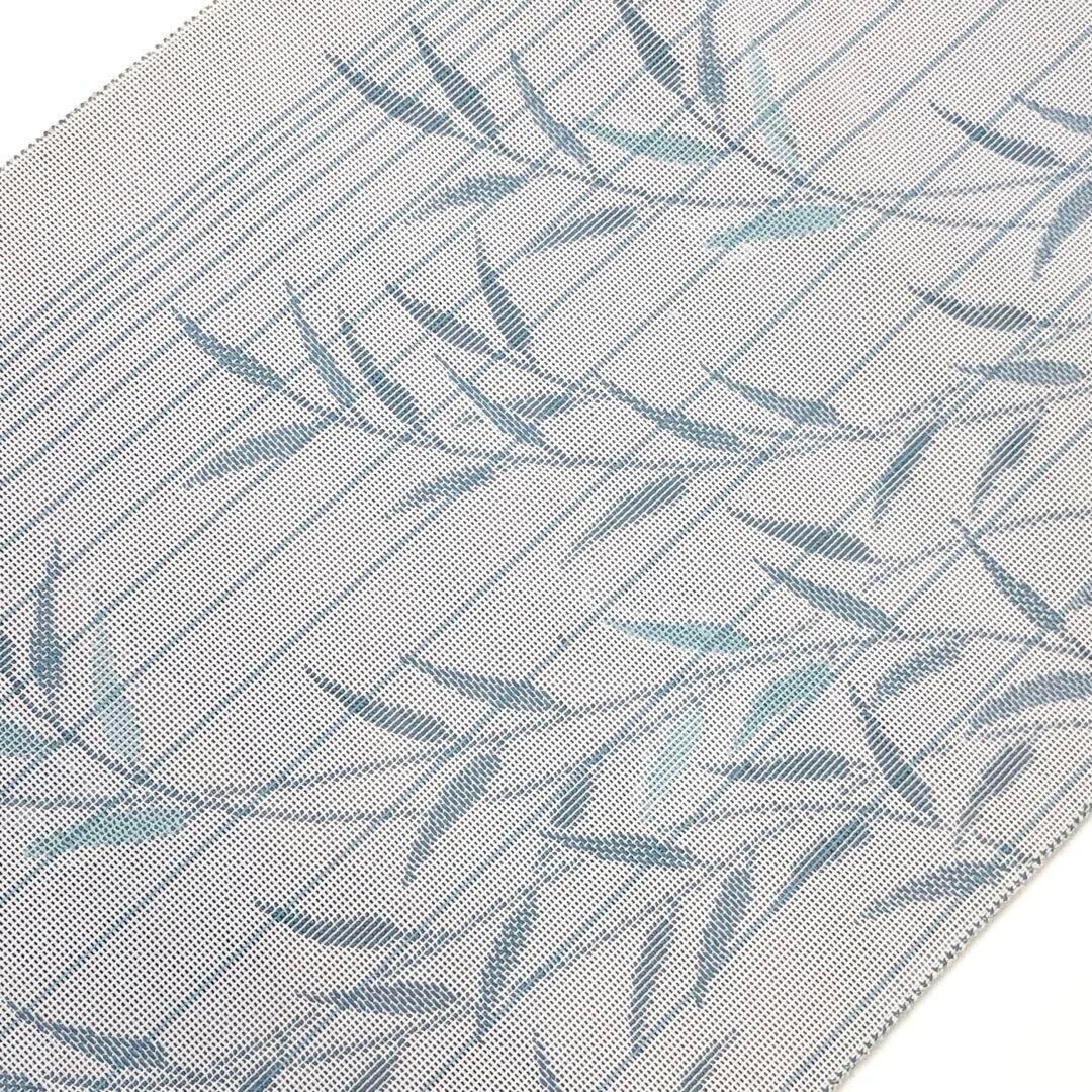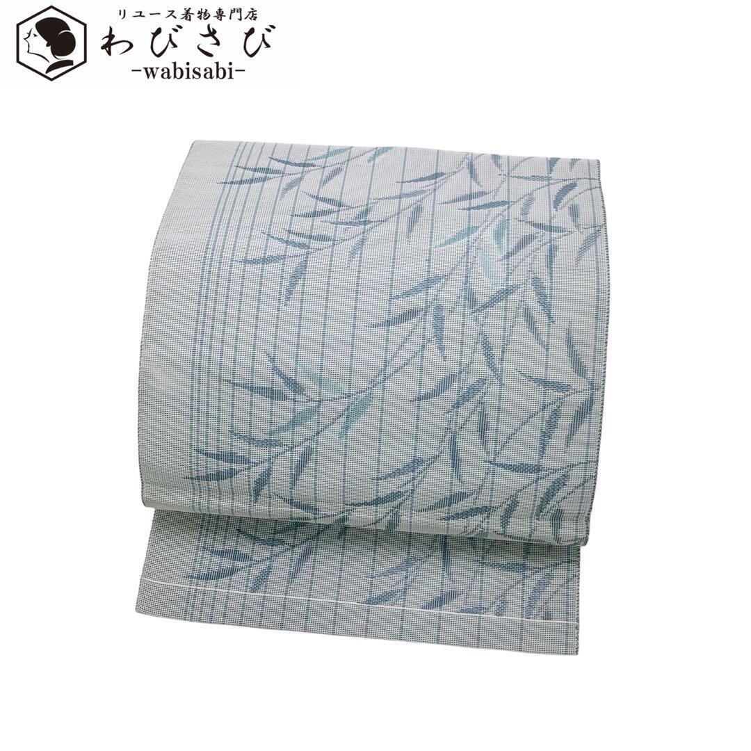 夏帯 名古屋帯 紗 縦縞に柳模様 青白磁色 O-4901 着物 きもの kimono 和服 和装 中古 リサイクル着物 【送料無料】