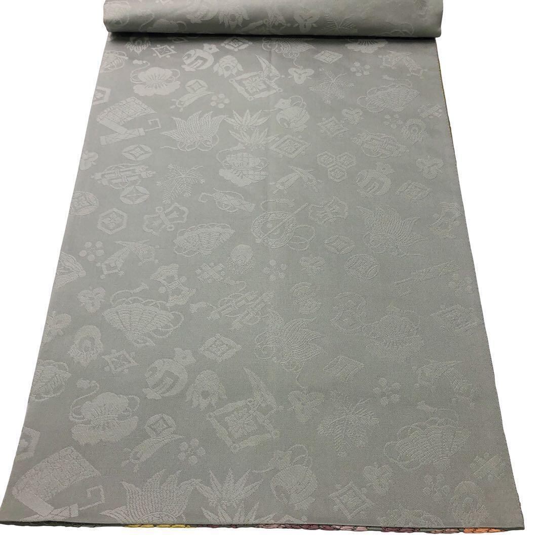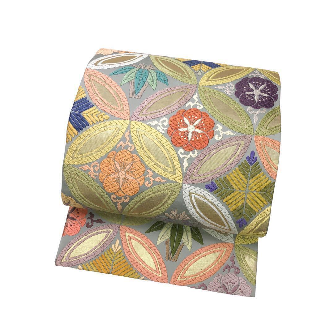 百彩、吉祥七宝三友文と題された草木唐織の袋帯です。