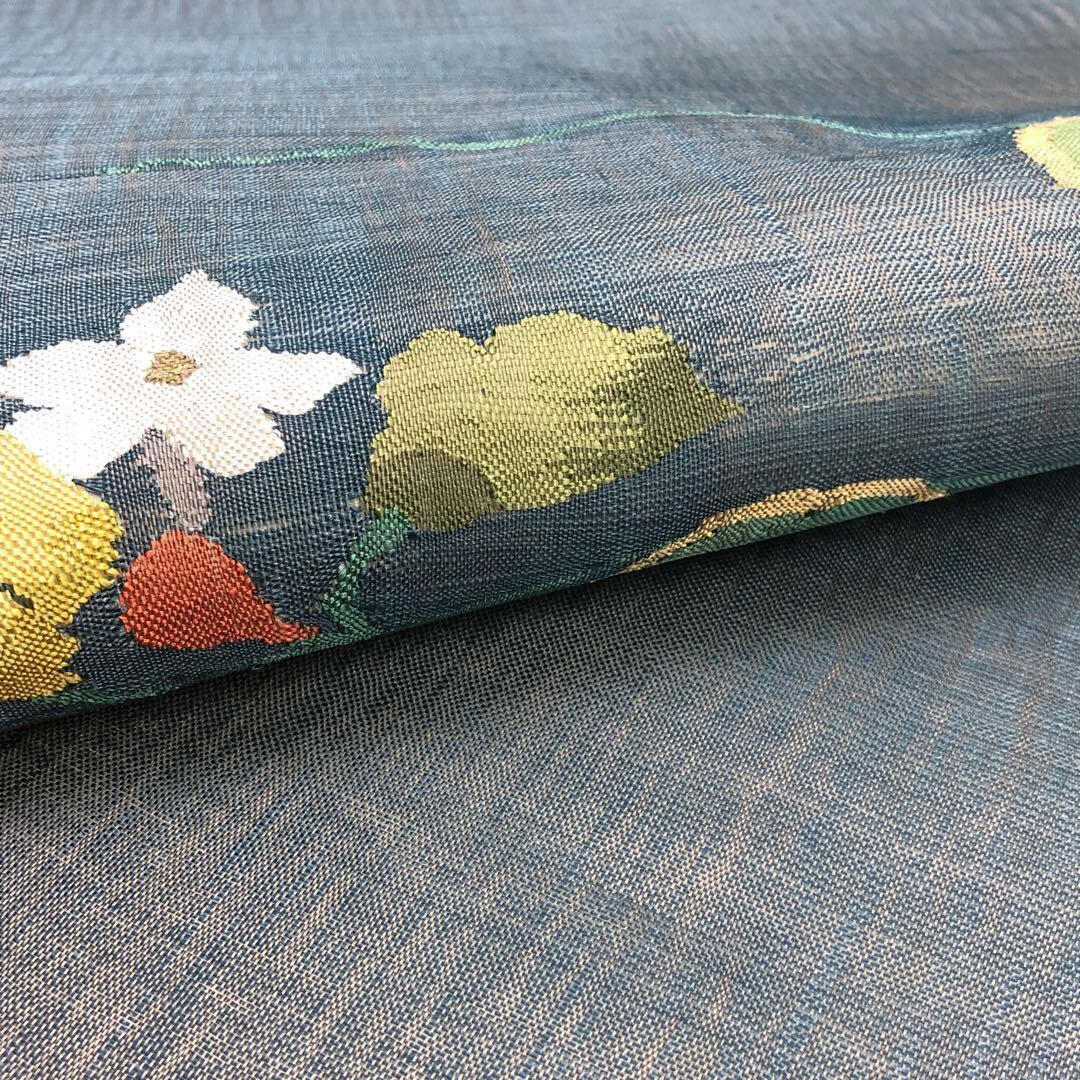 錫紵色の落ち着きのあるお色味に織柄の花模様がデザインされた素敵な柄裄のお品でございます。