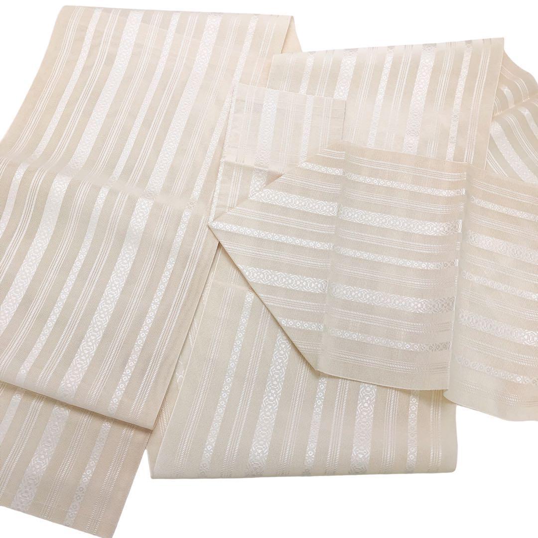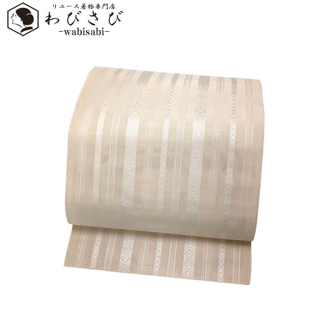 夏帯 名古屋帯 本場筑前博多織 紗献上柄 乳白色 O-4906 着物 きもの kimono 和服 和装 中古 リサイクル着物 【送料無料】