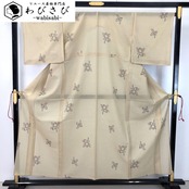 夏着物 紗紬 飛び柄 抽象柄 枯野色 K-4522 着物 きもの kimono 和服 和装 中古 リサイクル着物 【送料無料】