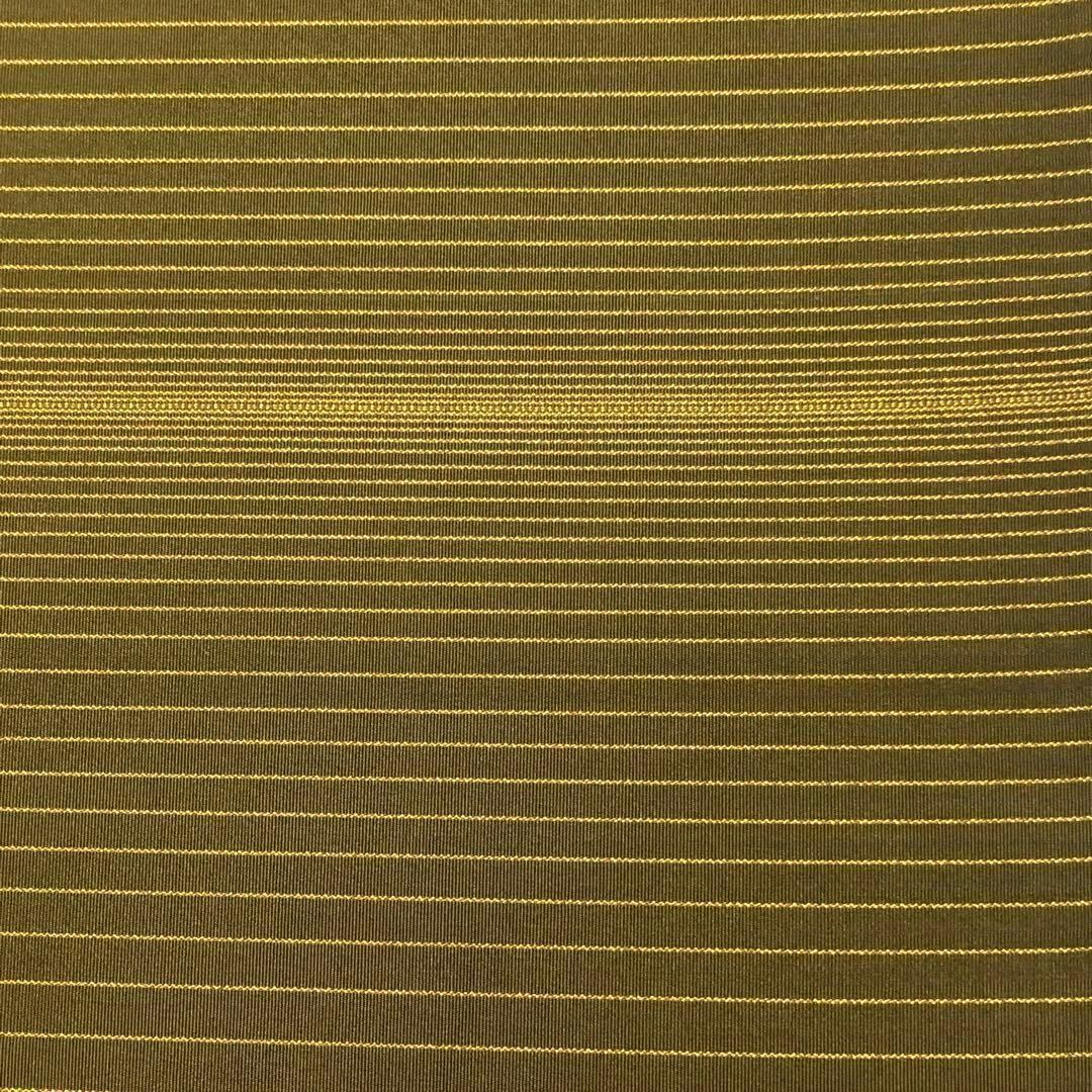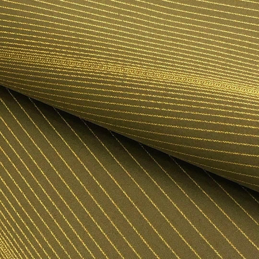雰囲気の良い国防色の漢方染のお色味に横縞模様の柄裄がデザインされた素敵なお品でございます。