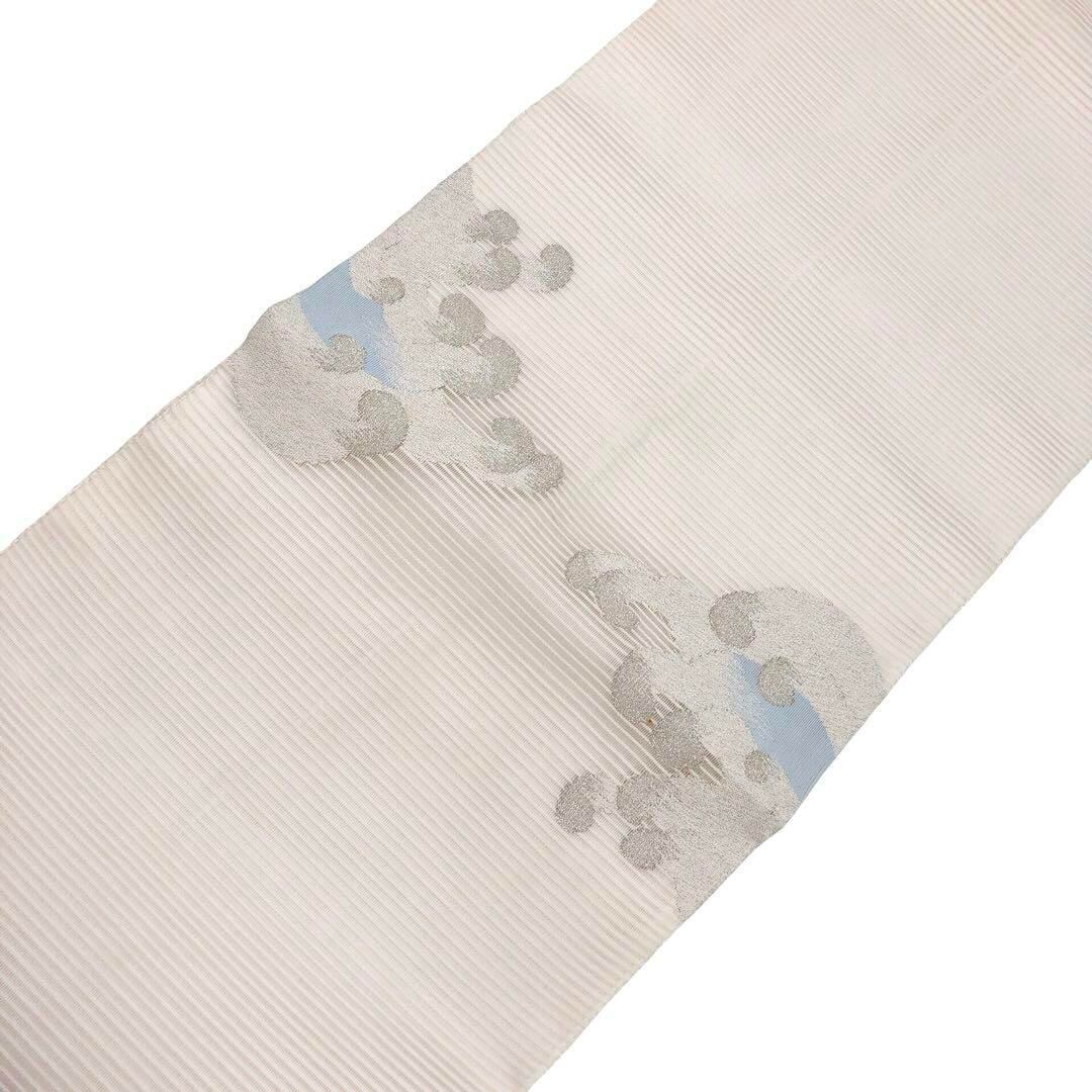 夏帯 袋帯 絽 波模様 金銀糸 乳白色 O-4907 着物 きもの kimono 和服 和装 中古 リサイクル着物 【送料無料】